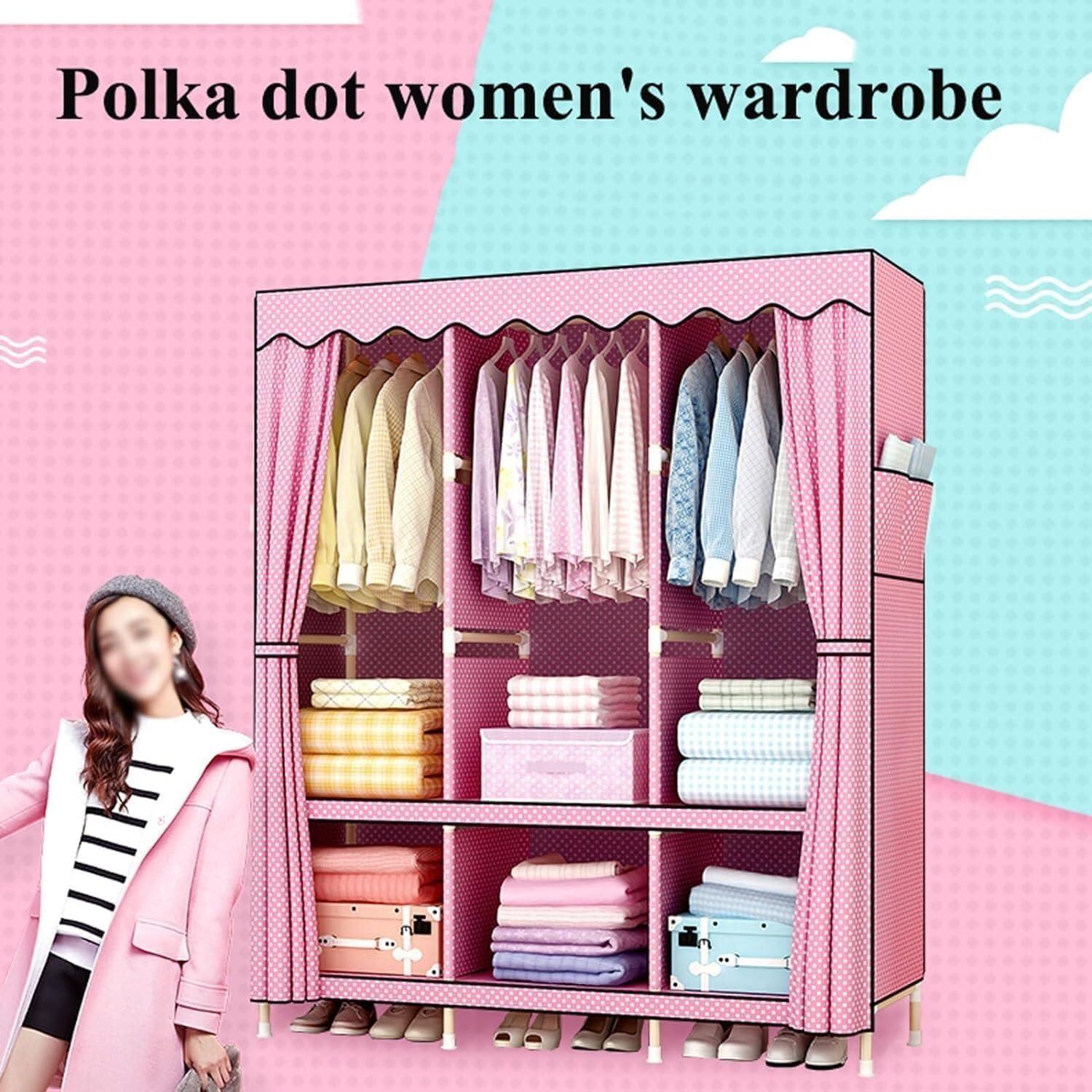 Covered in washable polyester cotton cloth, the wardrobe resists corrosion and tearing, which keeps it looking fresh and clean over time. Thoughtfully divided interior sections optimize storage while maintaining structural balance,preventing any leaning or collapsing. Key features contributing to its longevity include: