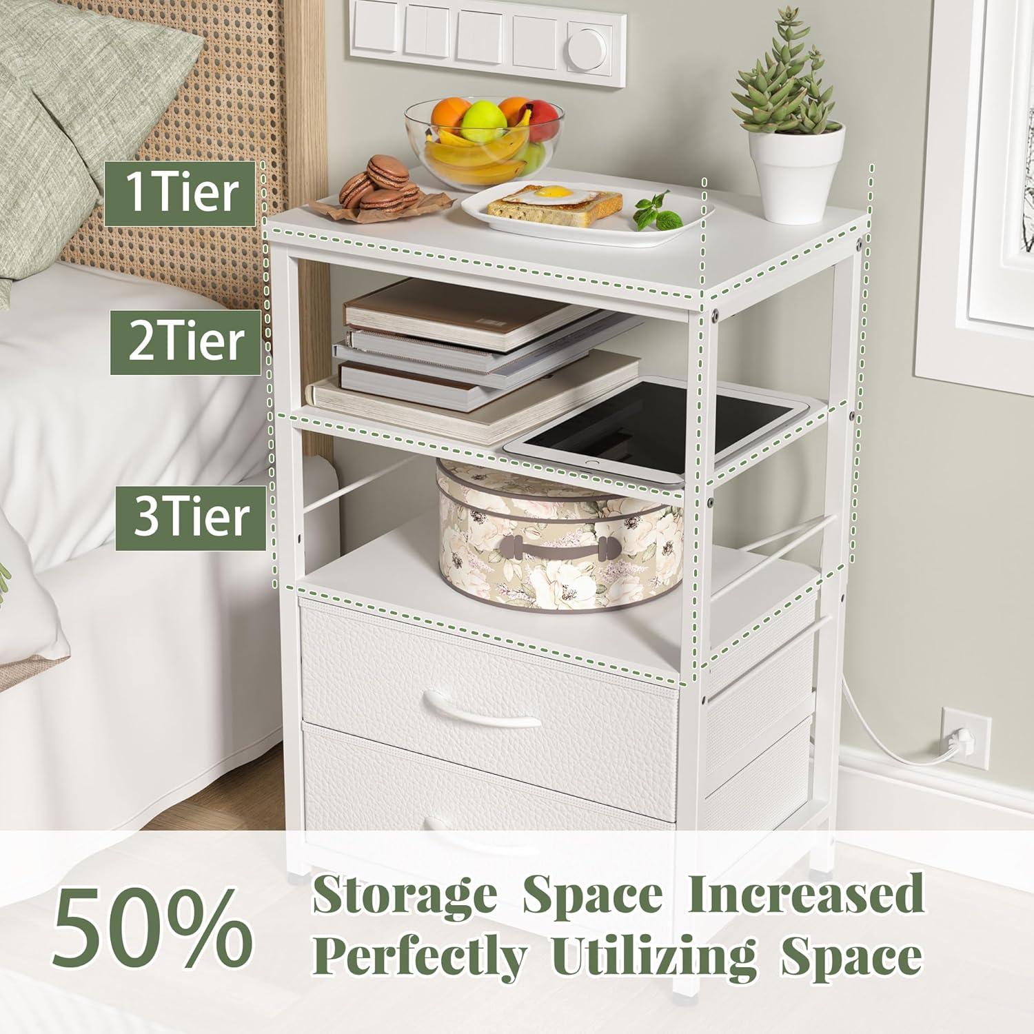 When it comes to stability, the steel frame paired with thicker engineered wood panels creates a surprisingly sturdy structure for a piece in this price range. The fabric drawers, although lightweight and constructed from softer materials, complement the solid shelving and resist sagging under normal use. The thoughtful 3-tier design not only enhances storage capacity by 50% but also keeps everything well-balanced, reducing any wobble or instability commonly found in budget nightstands. Whether holding your nighttime essentials or powering devices via the integrated charging station,this bedside table maintains its integrity with reliable build quality.