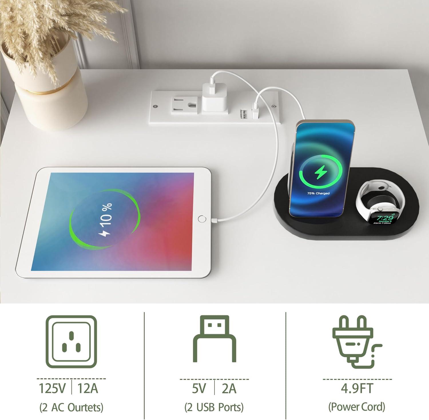 - Convenient charging: 2 AC outlets and 2 USB ports