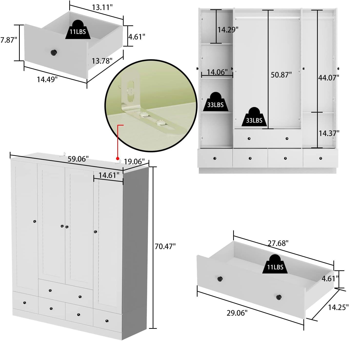 | 59.06″W x 19.06″D x 70.47″H | Spacious design | Allows storage of varied clothing and items |