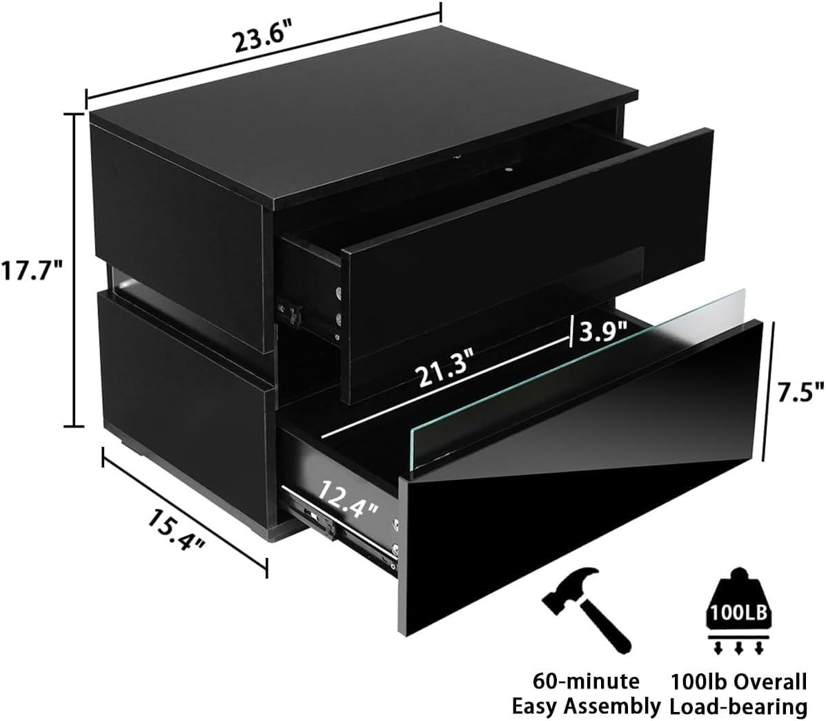 15.4″ D x 23.6″ ‌W ⁢x 17.7″ H 2‌ Drawers + Spacious Top UV Triamine ​Board (Glossy Front)