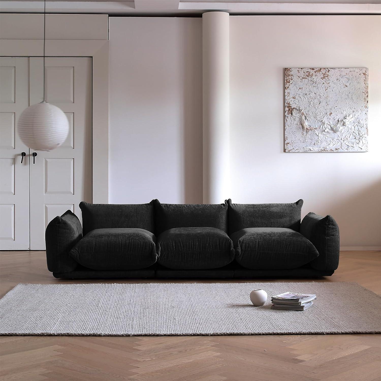 Upon unboxing and setting up this sectional, the first thing that caught our attention was its sleek, minimalist design paired with a premium black chenille upholstery that feels exceptionally soft yet durable. The couch has a sturdy sponge-filled frame that balances firmness with cushiony comfort, providing a welcoming seating experience that supports good posture without sacrificing coziness. The slightly curved backrest embraces the natural contours of your back, making it ideal not only for lounging but also for social gatherings or long hours of use in home offices or living rooms.