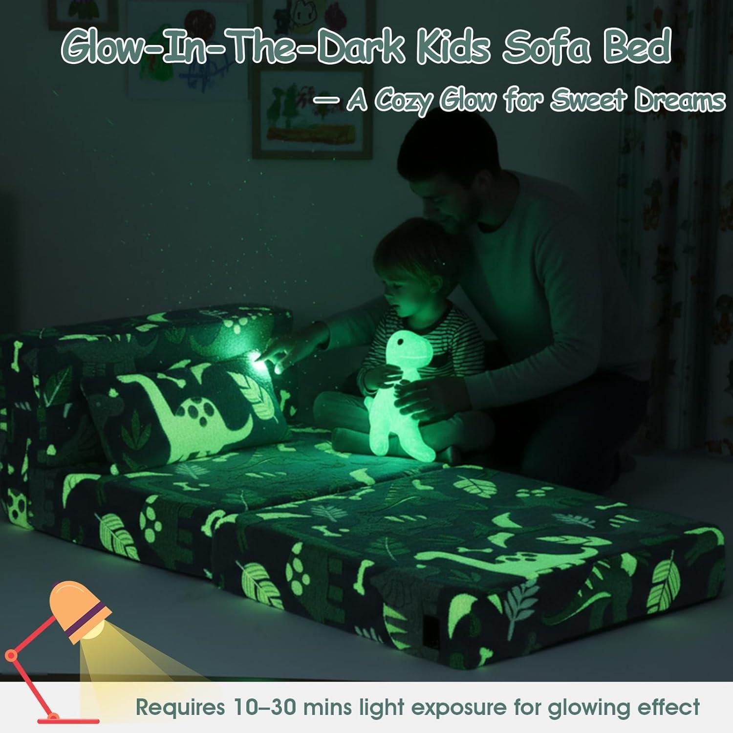 Its multi-functional design shines through both materials and structure. The glow-in-the-dark plush fabric adds a delightful touch that kids adore, turning bedtime into a fun experience. The mattress folds compactly, fitting neatly into the included storage bag, which makes it extremely portable and ideal for travel or quick storage. Whether used as a sleeper, lounger, or play couch, the materials hold up admirably to everyday wear and tear, making it a reliable companion for little ones’ adventures.