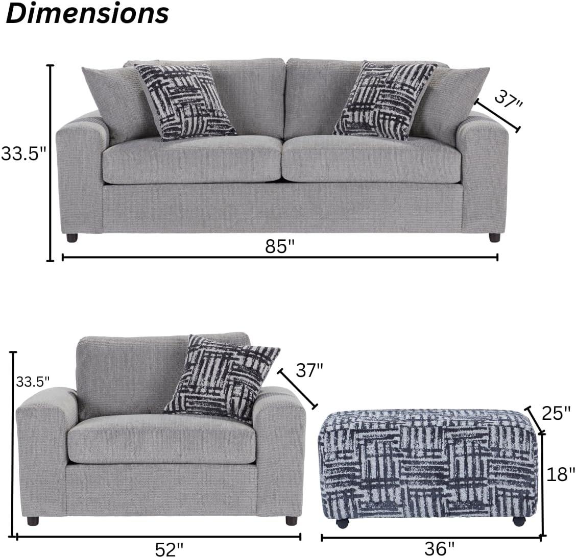 For anyone seeking a versatile yet chic update to their living room, this set offers an excellent blend of form and function. The inclusion of the cuddle chair and ottoman-with rolling casters on the latter for enhanced mobility-adds convenience that suits varying needs and layouts. Available in two refined colors, Beige Oyster and Gray Shadow, plus accent pillows to complete the look, this set arrives fully assembled for immediate enjoyment. Below is a quick overview of the key specifications to help with your decision: