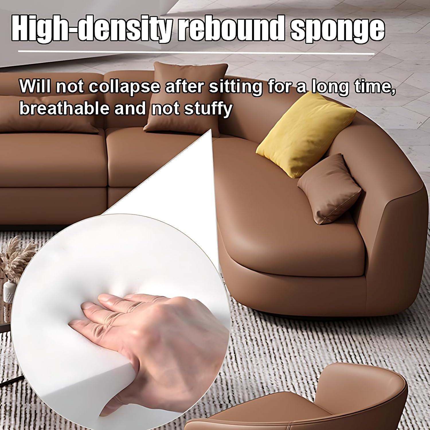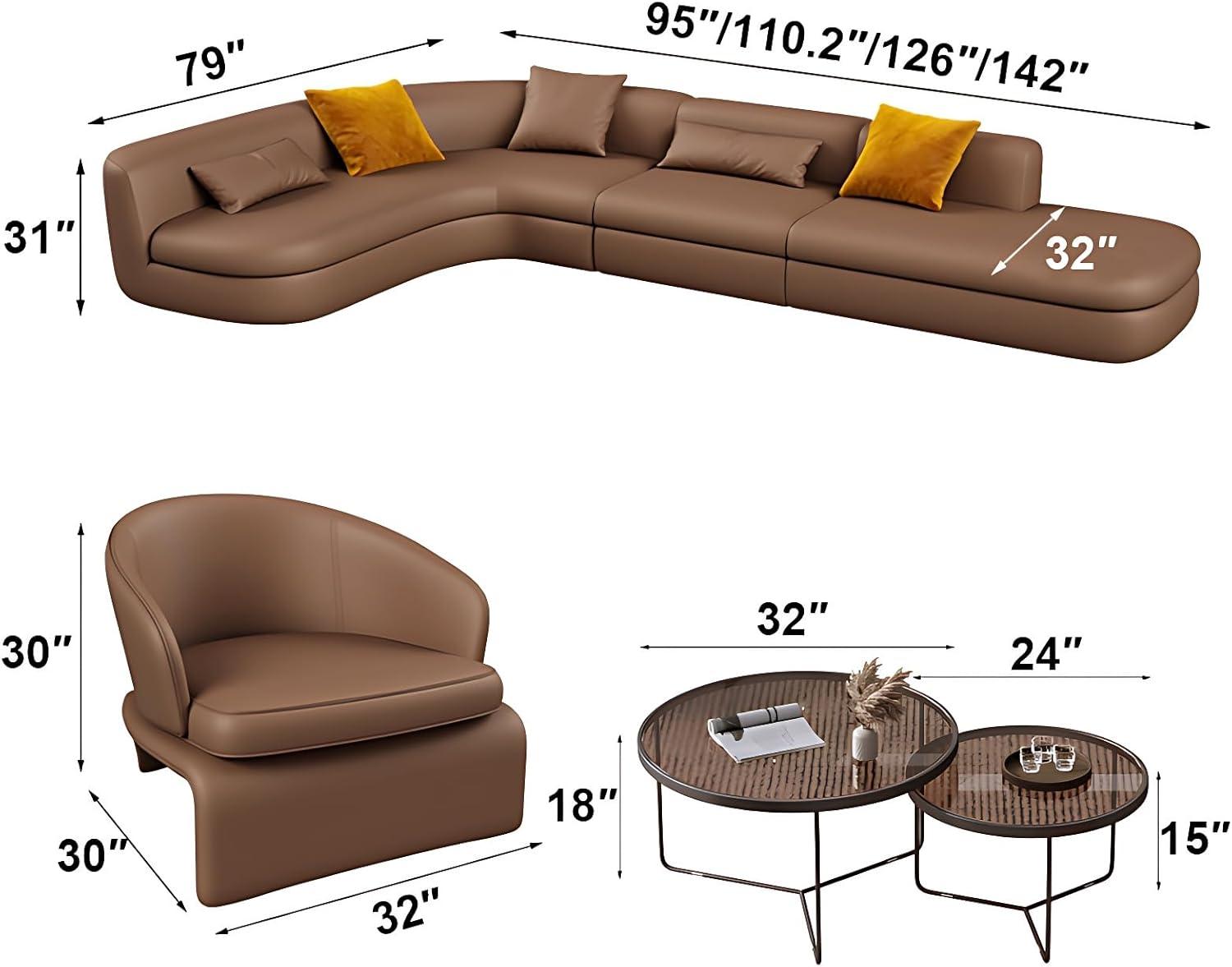 After weeks and months of living with the Curved Sectional Couches – Luxurious Sectional Sofa Set with Chair, Premium Leather, Solid Wood Frame Couch Sets with Coffee Table for Multiple Scenes (Brown-Chair*3,142IN), you notice how it settles into the room’s rhythms rather than how it looked on day one. In daily routines the cushions give a little more in the spots people choose, the coffee table gathers morning cups and stray mail, and the surfaces pick up the small scuffs and softening that come from regular use. as the room is used, the set stops asking for attention and becomes a quiet backdrop to breakfasts, evenings and the scattered ways a household moves through a day. It stays.