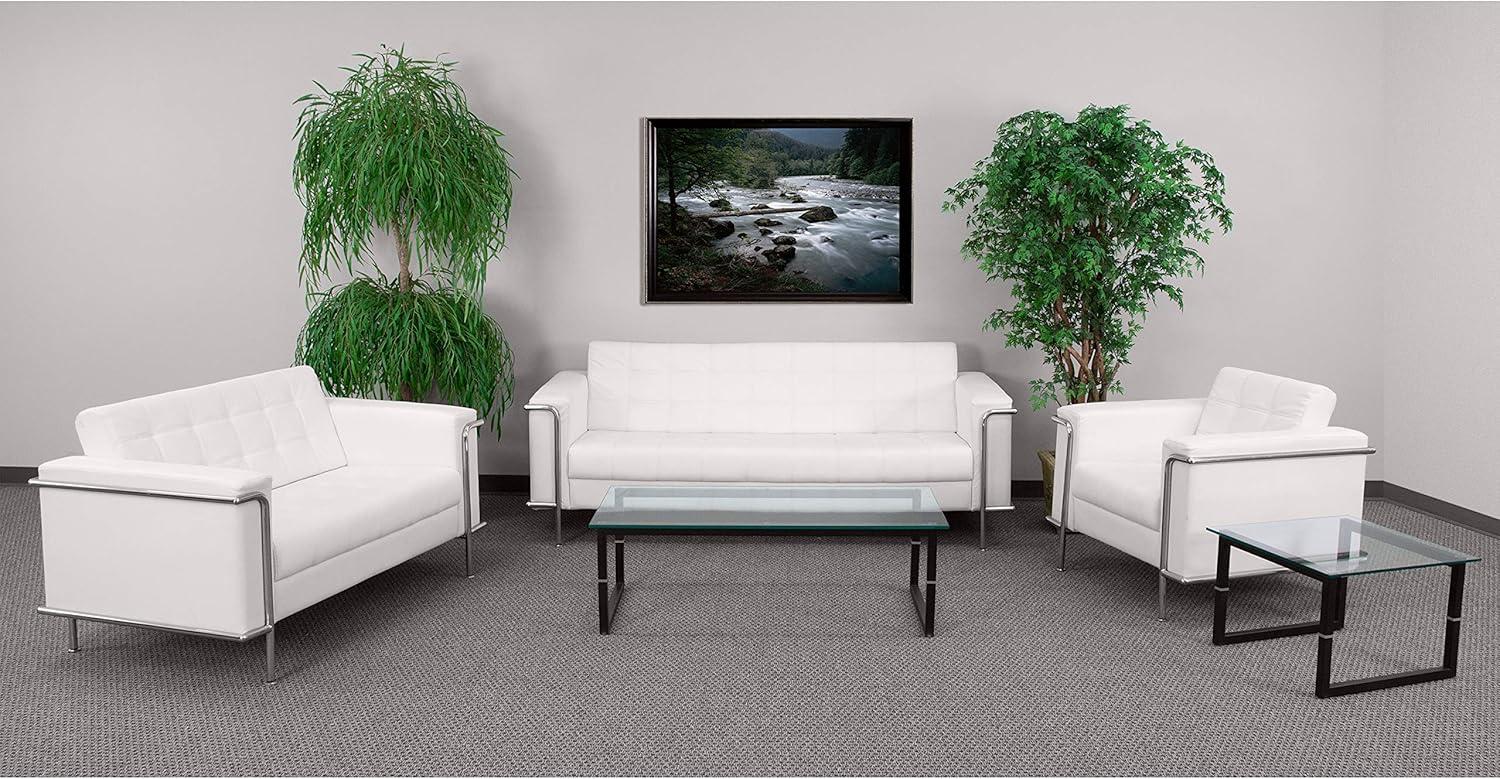 the Flash furniture HERCULES Lesley Series Reception Set in White LeatherSoft truly stands out as a versatile and stylish addition to any space.Whether welcoming guests in a professional office or creating a modern waiting area at home, this set combines comfort, durability, and contemporary design seamlessly. Its plush cushions and sleek stainless steel legs not only promise lasting support but also elevate the overall ambiance with an understated elegance. We believe this reception set makes a statement without saying a word-perfect for those who value both form and function.