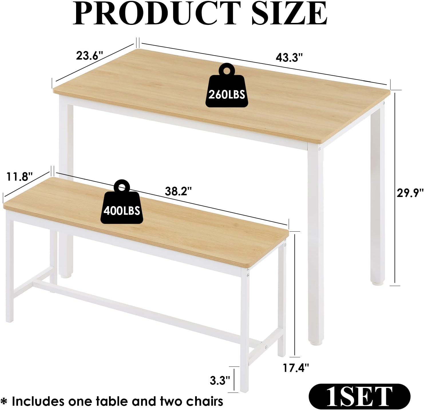 The build quality reinforces its appeal for everyday use. The sturdy steel frame provides notable stability, supporting up to 260 pounds on the table and 400 pounds on each bench, which reassures us of its durability during family meals or social gatherings. The smooth particleboard surface is not only resilient but also easy to clean with just a damp cloth, helping maintain its fresh appearance over time. Assembly was straightforward, thanks to clearly labeled parts and included tools, which makes setup hassle-free. Below, we’ve summarized some key specifications for a speedy overview: