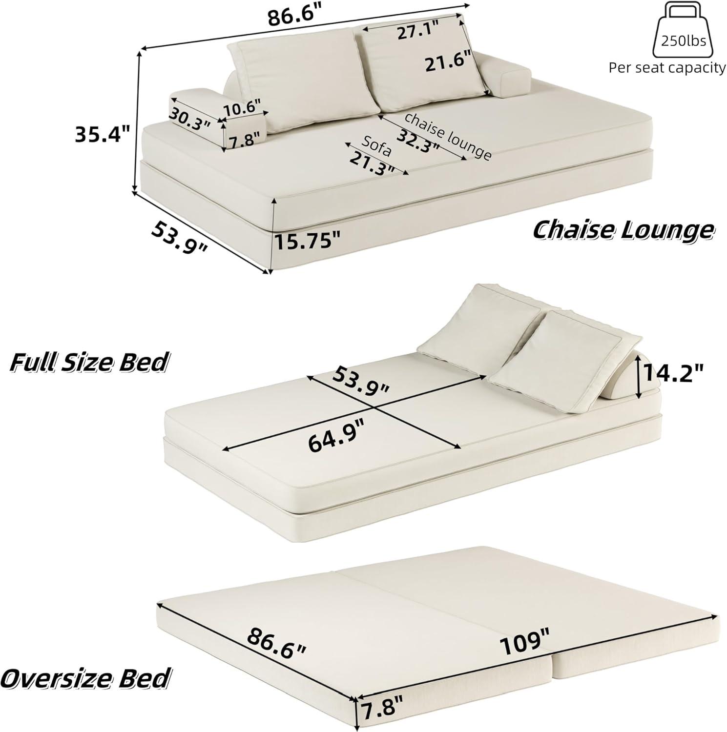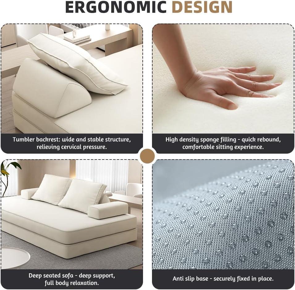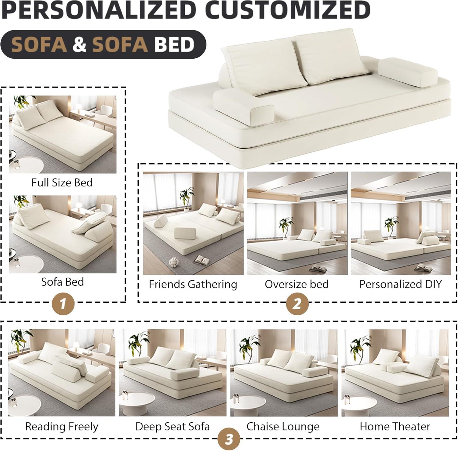 • Multi-Functional Design: Easily converts between sofa, loveseat, chaise lounge, sleeper bed, and game mat, offering personalized comfort.