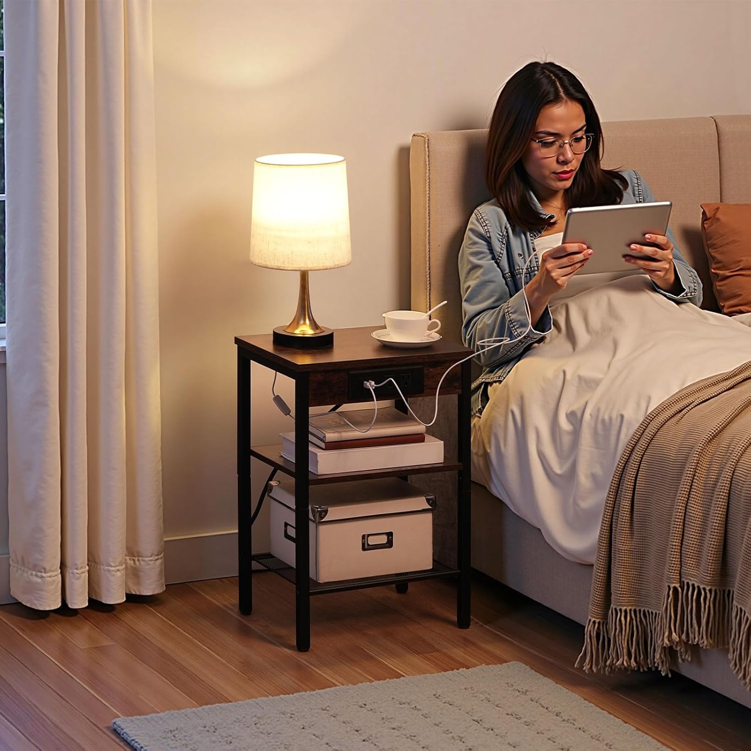 We recently got our hands on the HOOBRO Side tables Set of 2 with charging Station and USB Port, and after spending some quality time with them, we’re excited to share our thoughts. these compact, 3-tier nightstands caught our attention not only for their rustic brown finish and sleek design but also for their practical features-adjustable shelves for customized storage and a built-in charging station that keeps devices powered up without the clutter. Perfectly sized for small spaces, they promised to bring both style and functionality into our living room and bedroom. Let’s dive into how they performed in real life and whether they live up to the convenience and stability they claim to offer.