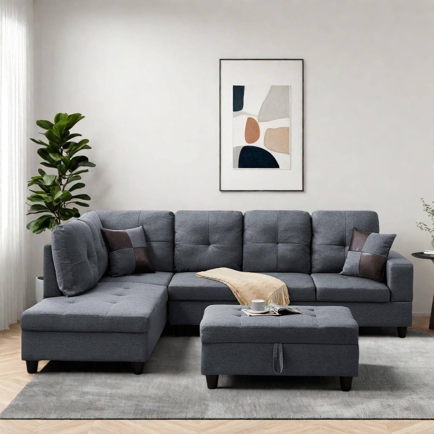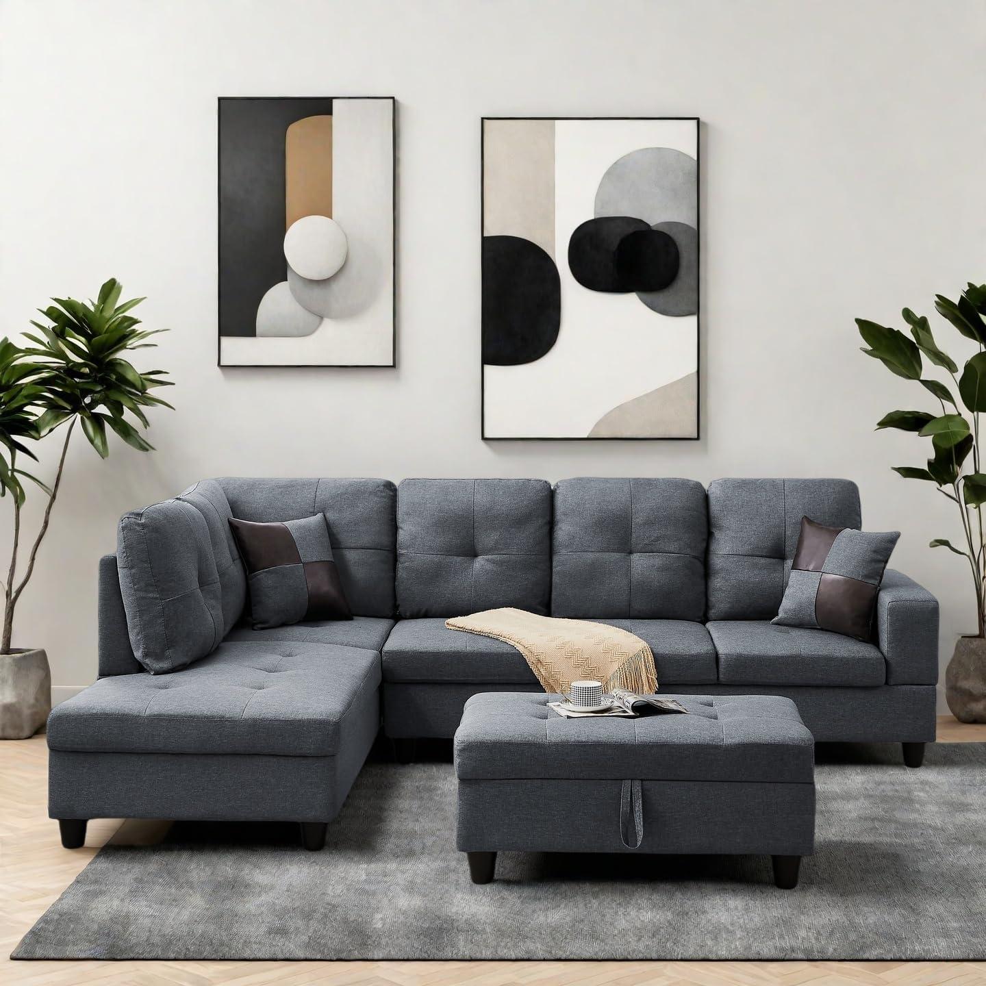 Putting this sectional together was a surprisingly smooth process. The fixed chaise comes pre-assembled, which saved us a lot of time and effort. The main couch sections connected easily via the modular design, requiring minimal tools and clear instructions. We appreciated how the movable backrests and detachable throw pillows simplified the setup, allowing us to adjust comfort during assembly rather than after. Even the storage ottoman arrived ready to use,which was a nice bonus.