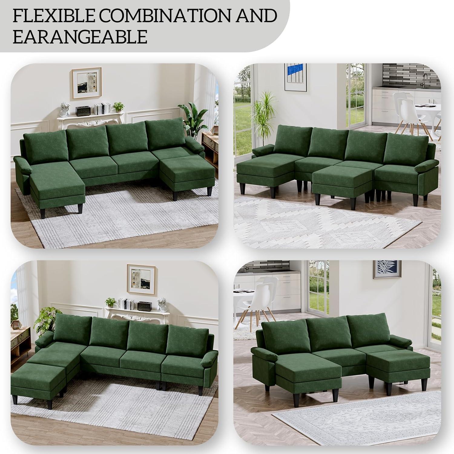 Modular and Customizable: Easily reconfigure the U-shaped layout and ottomans to suit your living room or office space needs. 🟠 Color Limitation: the bold green upholstery might not blend well with all interior styles or color palettes.
