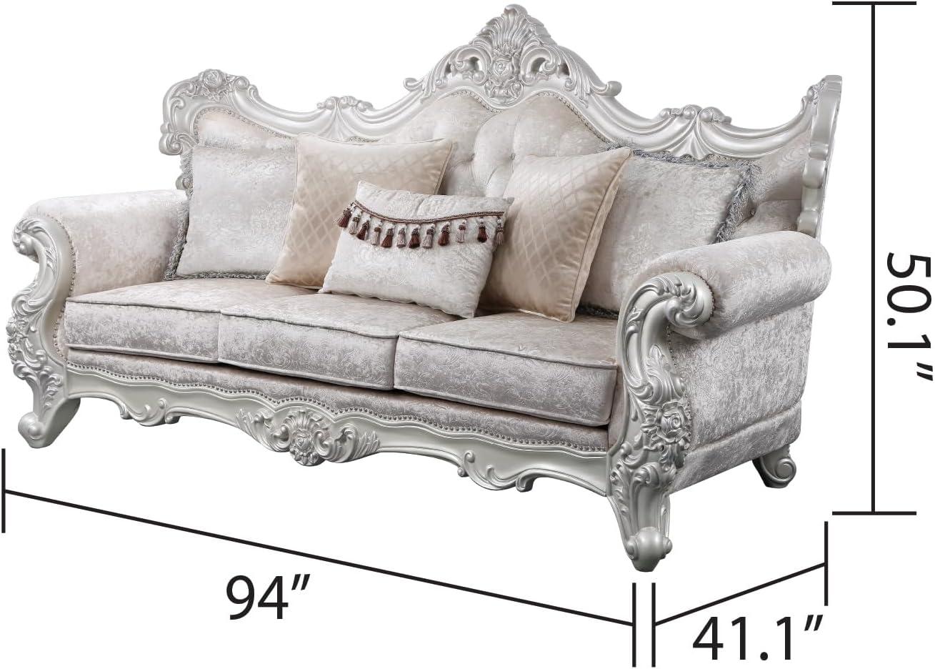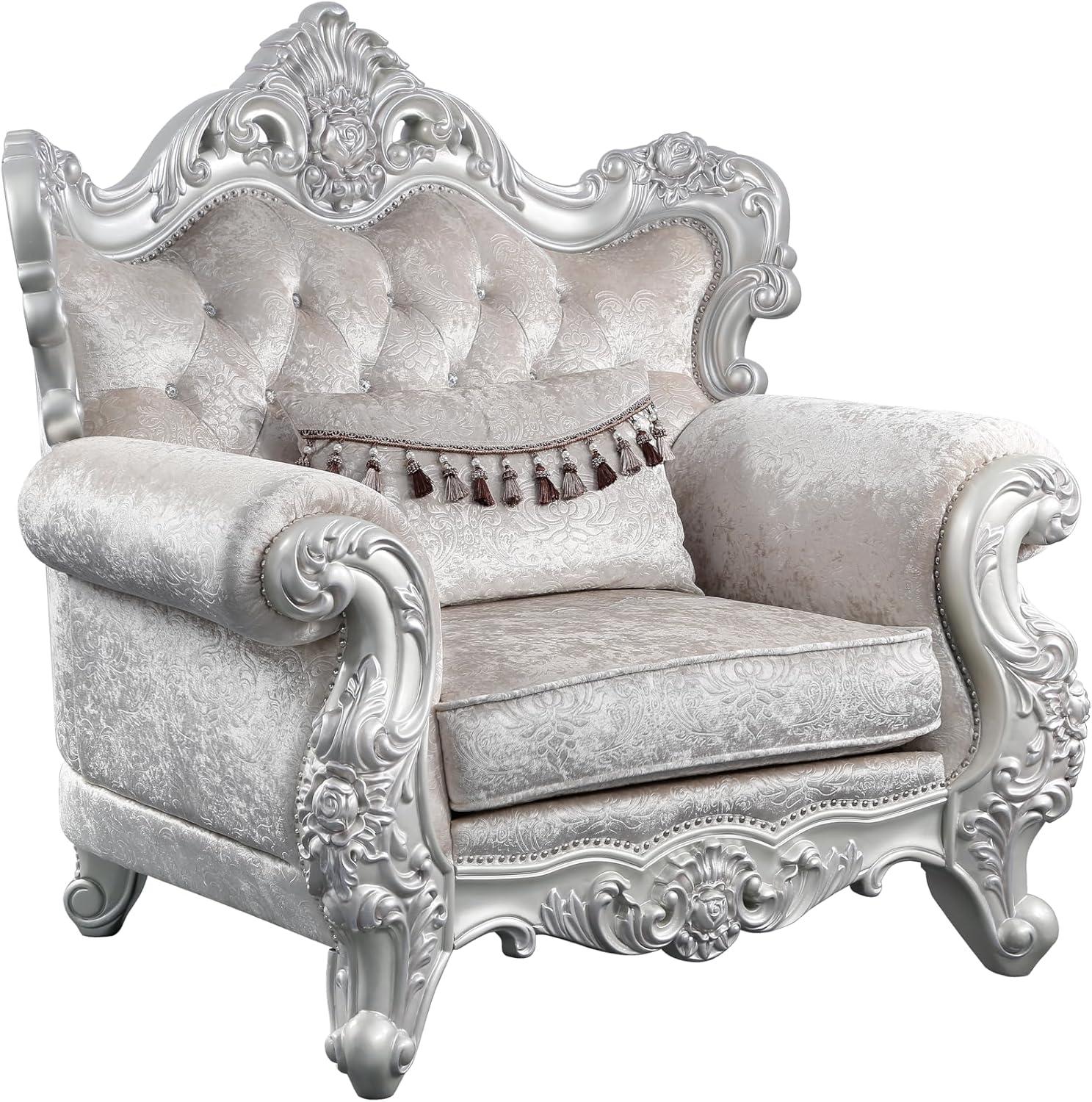 The champagne silver finish of this living room set introduces a sophisticated glow that seamlessly elevates the ambiance of any room. Its warm, muted tones paired with subtle silver brush accents add a refined touch without overpowering existing décor. This balance allows the furniture to complement both classic and contemporary interiors, creating a versatile backdrop that invites both relaxation and style.The finish’s gentle sheen reflects light just enough to bring a cozy vibrancy to living spaces, making every corner feel inviting and thoughtfully designed.