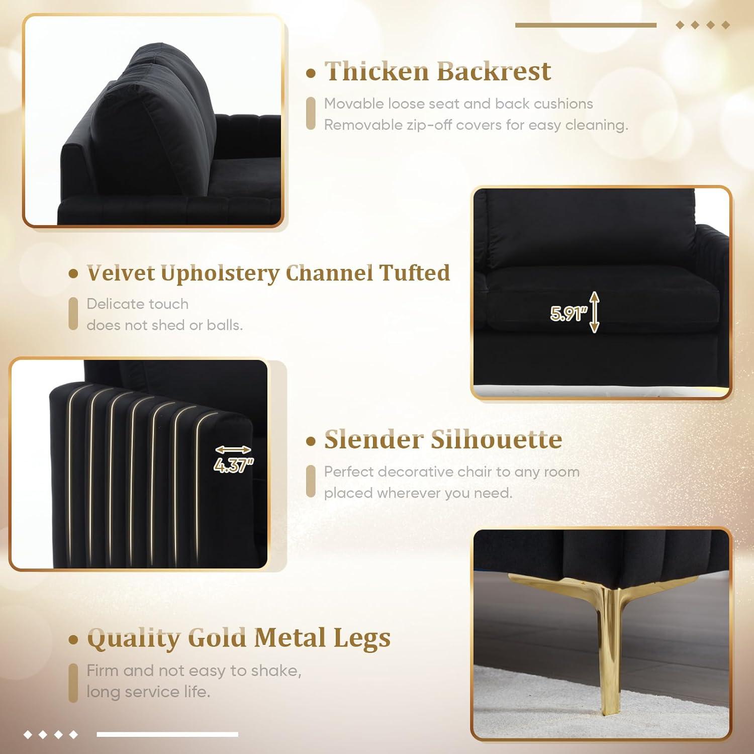 Upon unboxing, the sofa set immediately impressed us with its blend of Mid-Century Modern style and glamorous velvet upholstery. The rich black velvet, combined with the golden legs, delivers a luxurious yet contemporary look that instantly elevates any living space or office corner.The soft, tufted cushions invite relaxation, promising a cozy seating experience, while the carefully crafted armrests enhance comfort for extended sitting sessions. Assembly was straightforward thanks to pre-drilled holes and clear instructions, allowing us to set up all three pieces – the 3-seater couch, loveseat, and accent chair – in under 30 minutes.