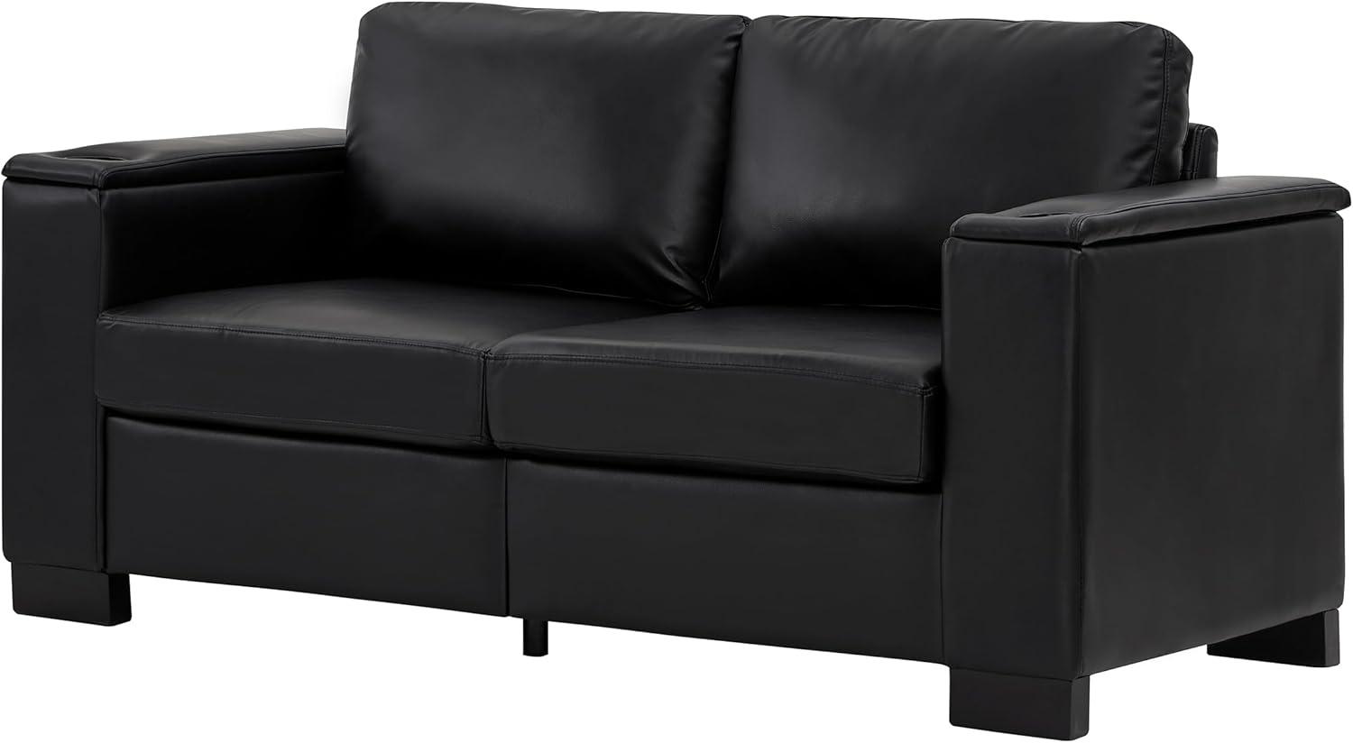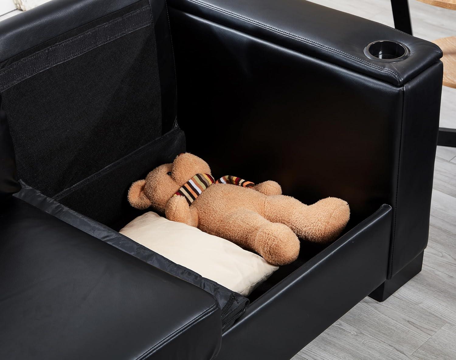 Alongside the storage, the sofa’s integrated cup holders add another layer of practicality without compromising style. Positioned on the square arms, they give us a secure spot for beverages during gatherings, eliminating the need for extra side tables. Maintaining the upholstery is also hassle-free thanks to the durable black PU leather, which resists spills and stains while keeping a polished look. Together, these features deliver a versatile, comfortable solution that adapts seamlessly to our everyday lifestyle.