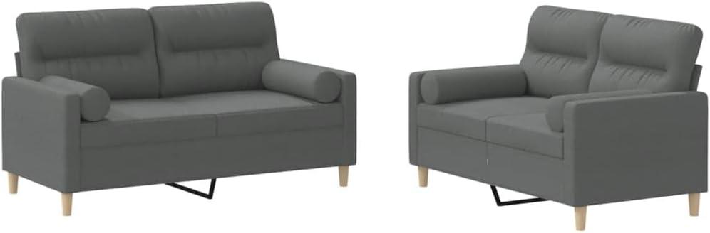 After spending considerable time with this sofa set, we can confidently say it strikes a great balance between style, comfort, and durability. The dark gray fabric offers a timeless, neutral tone that effortlessly complements various decor styles, while the breathable material ensures lasting freshness and wear resistance.Thanks to the sturdy plywood and metal frame, stability is never a concern, even during extended lounging sessions. Plus, the plush foam cushioning combined with the ergonomic design creates an inviting space perfect for casual conversations, quiet reading, or binge-watching your favorite shows. The addition of roll pillows not only adds a stylish accent but also enhances comfort, offering versatile support whether you’re sitting upright or reclining.