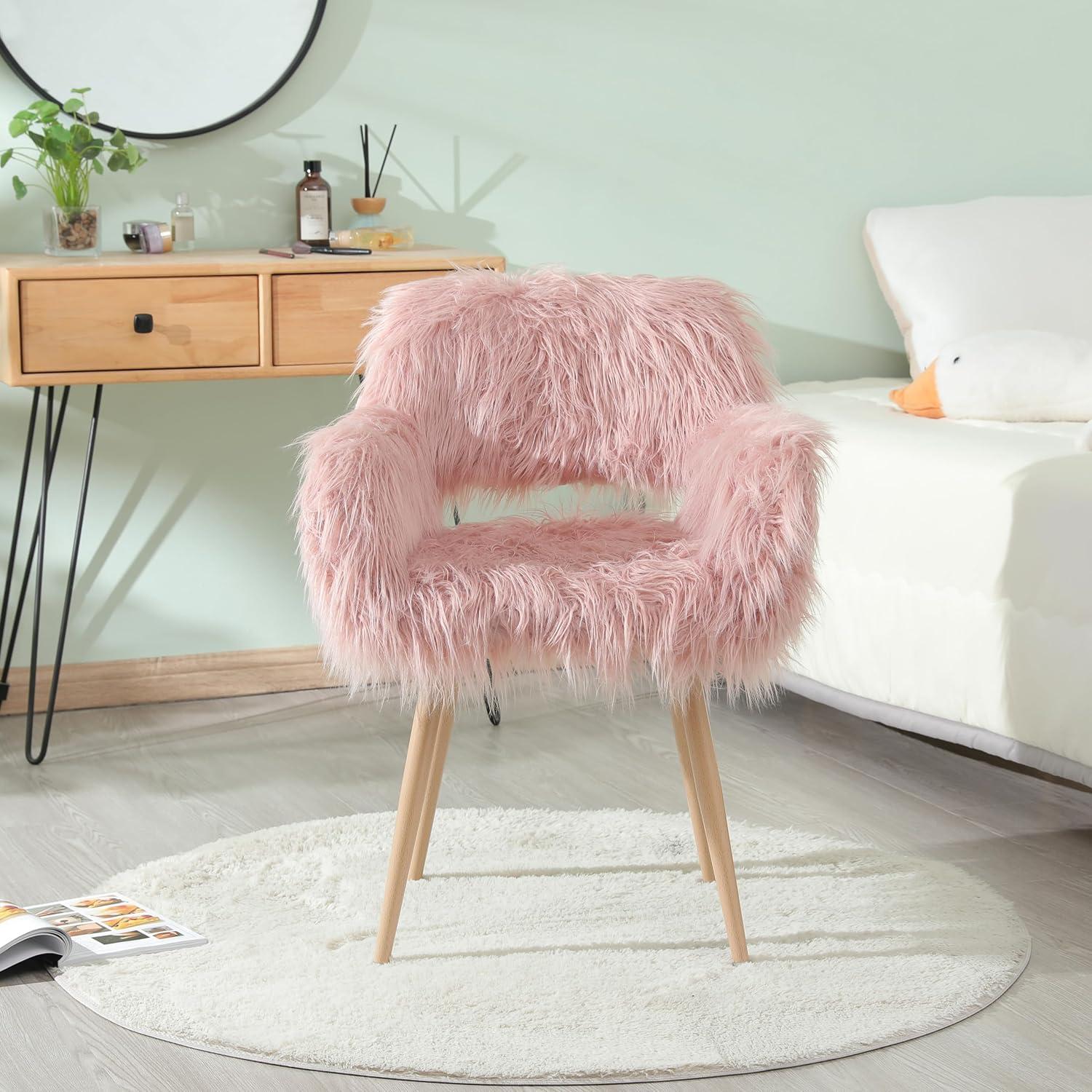 Modern Desk Chair Furry Pink Vanity Chair – your vanity nook