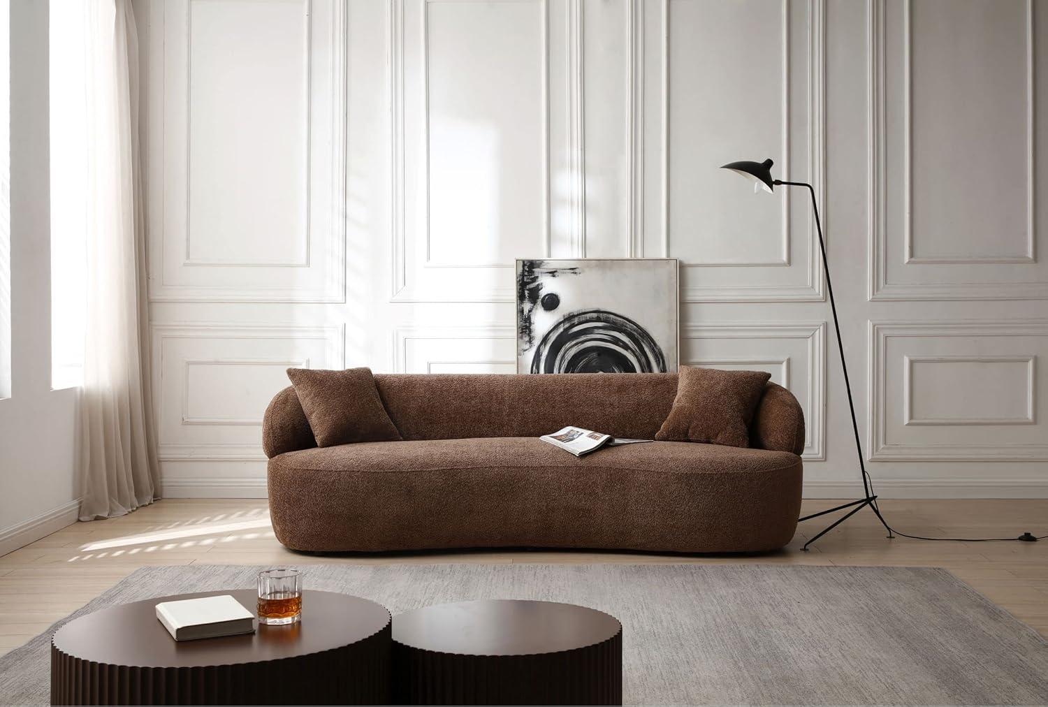 After spending considerable time with this curved boucle sofa, we feel confident recommending it to anyone seeking both style and comfort in their living space. Its unique half-moon design not only adds a modern, sculptural element but also supports the body ergonomically, making it ideal for long lounging sessions. The high-resilience boucle fabric delivers a soft, breathable touch, while the thickened foam cushions provide firm yet plush comfort that retains shape over time. The solid wood frame assures stability and durability, supporting up to 300 pounds per seat without hassle. Plus, the included throw pillows enhance coziness and accessorize the look seamlessly.