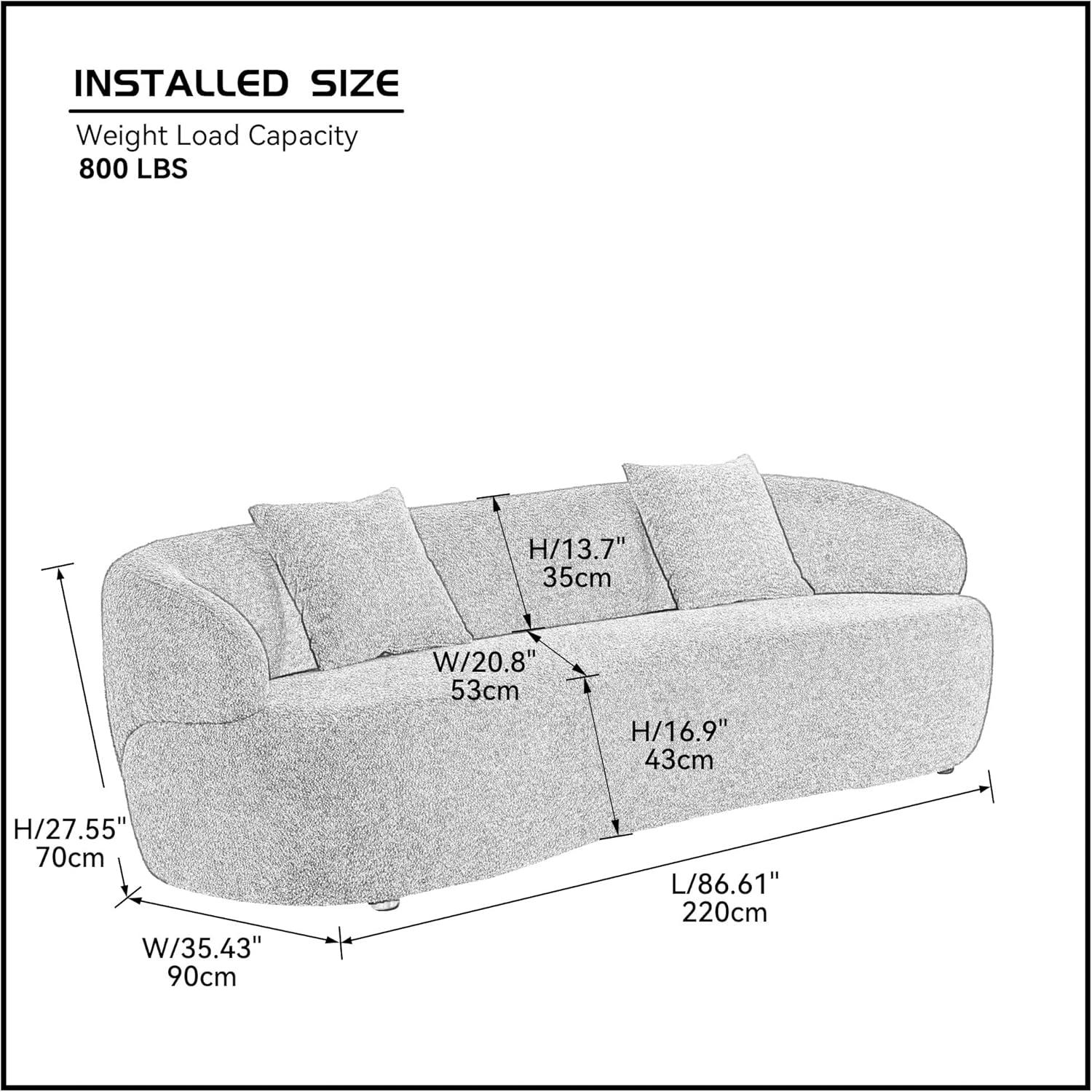 - Dimensions: 86.6″ W x 35.4″ D x 27.6″ H