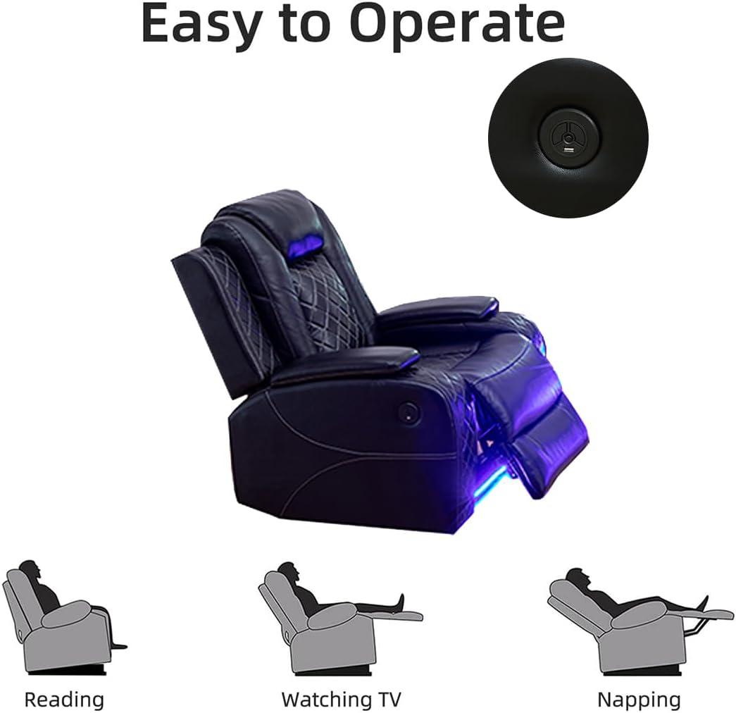 For living rooms that serve as both entertainment hubs and relaxation zones, the integrated LED ambient lighting creates a cozy atmosphere that enhances movie nights or quiet evenings. Households with tech-savvy members will appreciate the smart power pad embedded in the drop-down table, allowing easy charging of mobile devices without clutter. The adjustable reclining feature, ranging from 110° to 160°, provides personalized comfort, making it ideal for anyone who enjoys stretching out after a long day. Additionally, the built-in storage console and cup holders keep essentials within reach, perfect for families who love hosting or have kids and pets, as the design keeps small items securely stored and reduces tripping hazards.