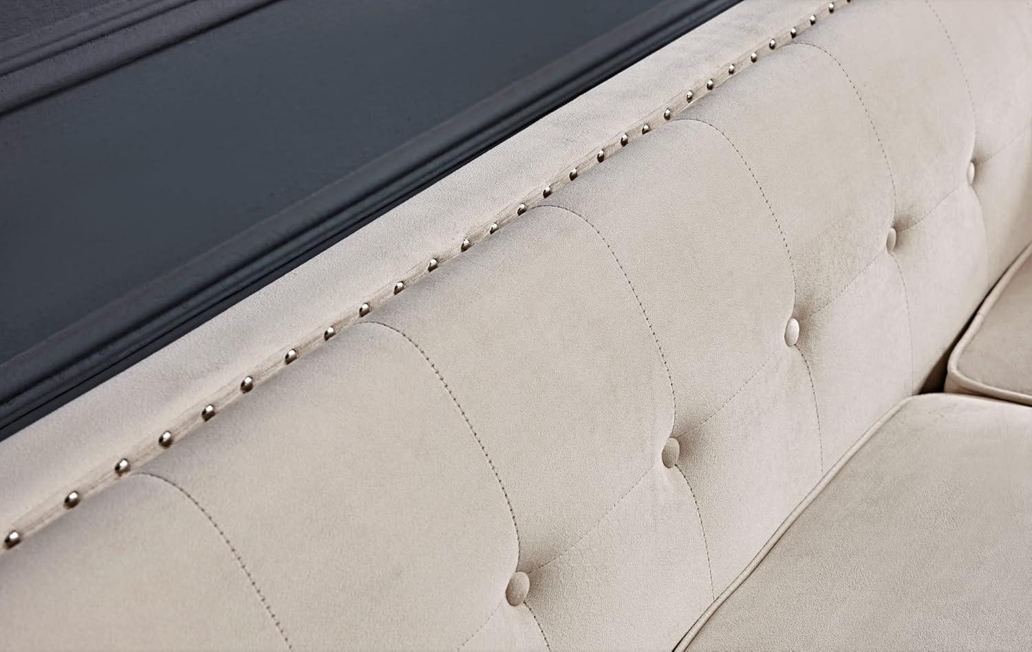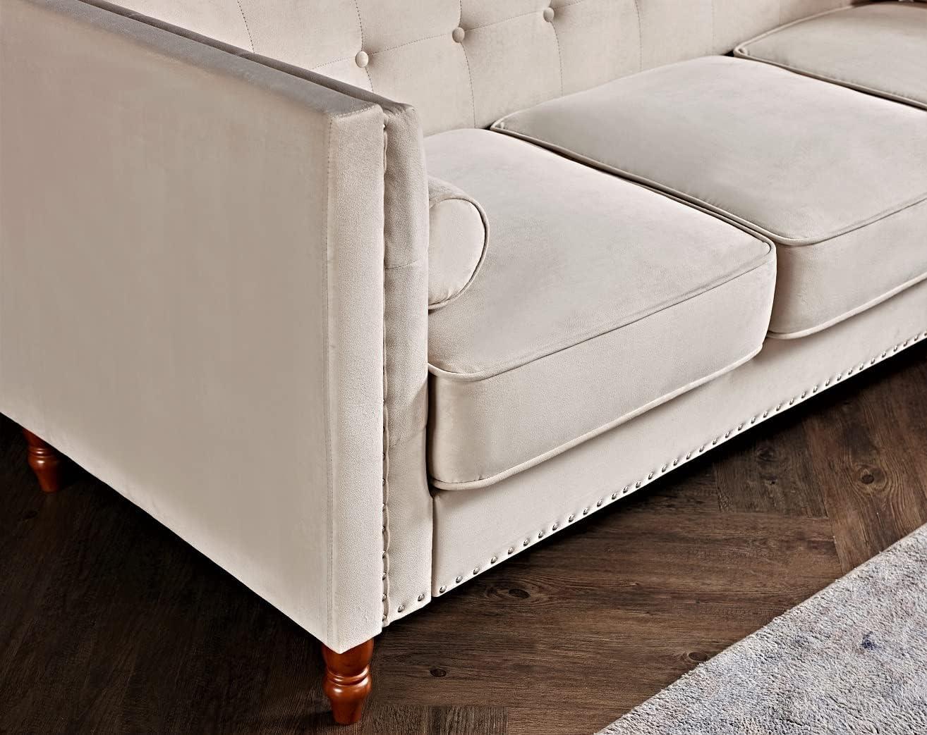 | Elegant mid-century modern design with timeless Chesterfield button tufting and nailhead accents | ivory velvet,while stunning,can show stains easily and may require extra care |