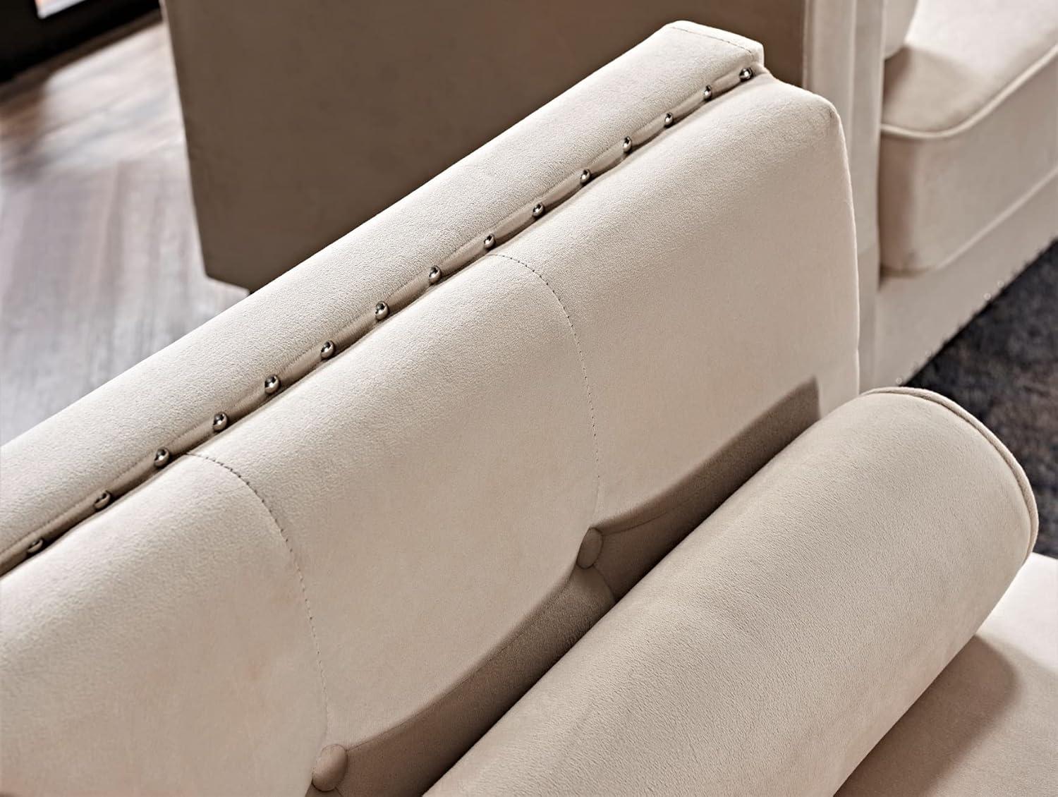 We appreciate how this set masterfully combines classic elegance with modern simplicity. The low-back design and deep button tufting provide a stylish yet understated silhouette that fits seamlessly in both contemporary and traditional spaces. Upholstered in soft ivory velvet, the fabric feels both luxurious and durable-perfect for daily use in living rooms, bedrooms, or office lounges. The sturdy wooden frame combined with turned wooden legs ensures stability, while the loose, high-density foam cushions offer exceptional comfort without sagging. Nailhead accents and matching bolster pillows add refined detail, enriching the overall aesthetic. Assembly is straightforward, requiring minimal effort to enjoy a stunning centerpiece that elevates any room’s ambiance.