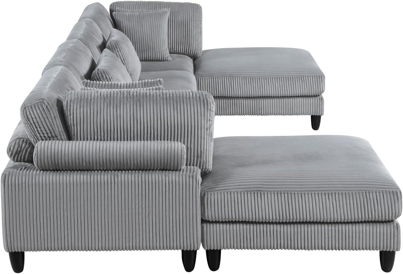 The combination of soft gray corduroy upholstery and modular components allows us to create a living space that’s both comfortable and visually inviting. the included matching pillows enhance coziness, while the removable, zippered cushion covers make upkeep straightforward. With such versatile options at our fingertips, this set refreshes our living area’s atmosphere, providing the perfect backdrop for everyday moments or special gatherings.