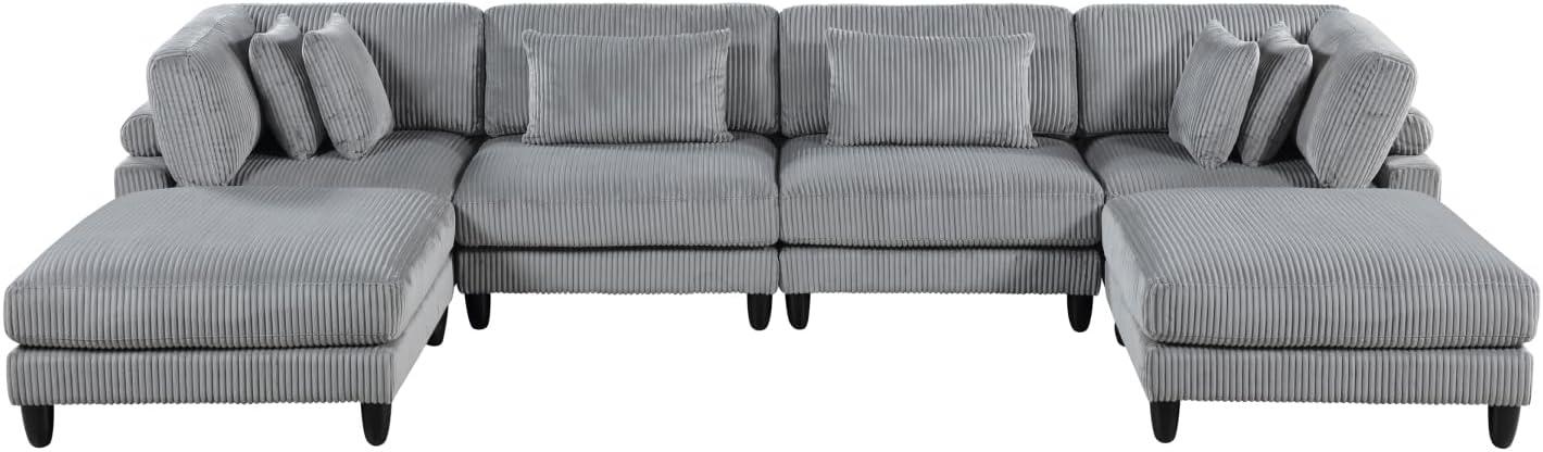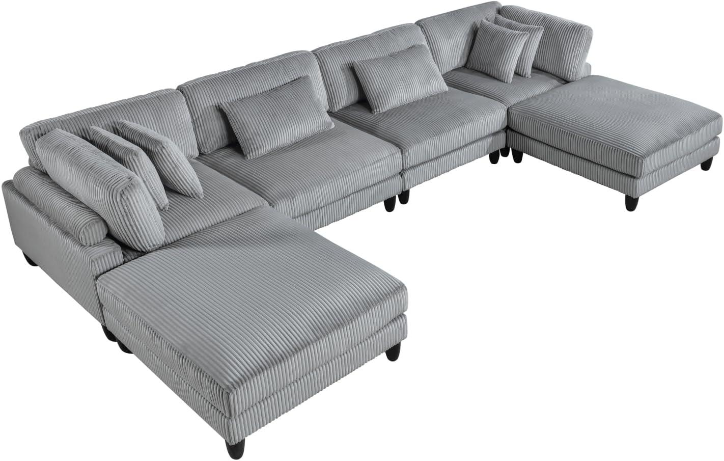 After thoroughly testing this modular sectional, we found it adapts wonderfully to a variety of living room layouts. The versatility of arranging two corner seats, two armless chairs, and two ottomans allows us to customize the seating to fit our space perfectly-whether for intimate conversations or larger gatherings. The high-quality gray corduroy fabric balances both style and comfort, making it a cozy spot for daily lounging or entertaining guests. The additional six matching pillows elevate the overall plush feel, and with reversible backs plus removable covers, upkeep is effortless, which is a huge plus for busy households.