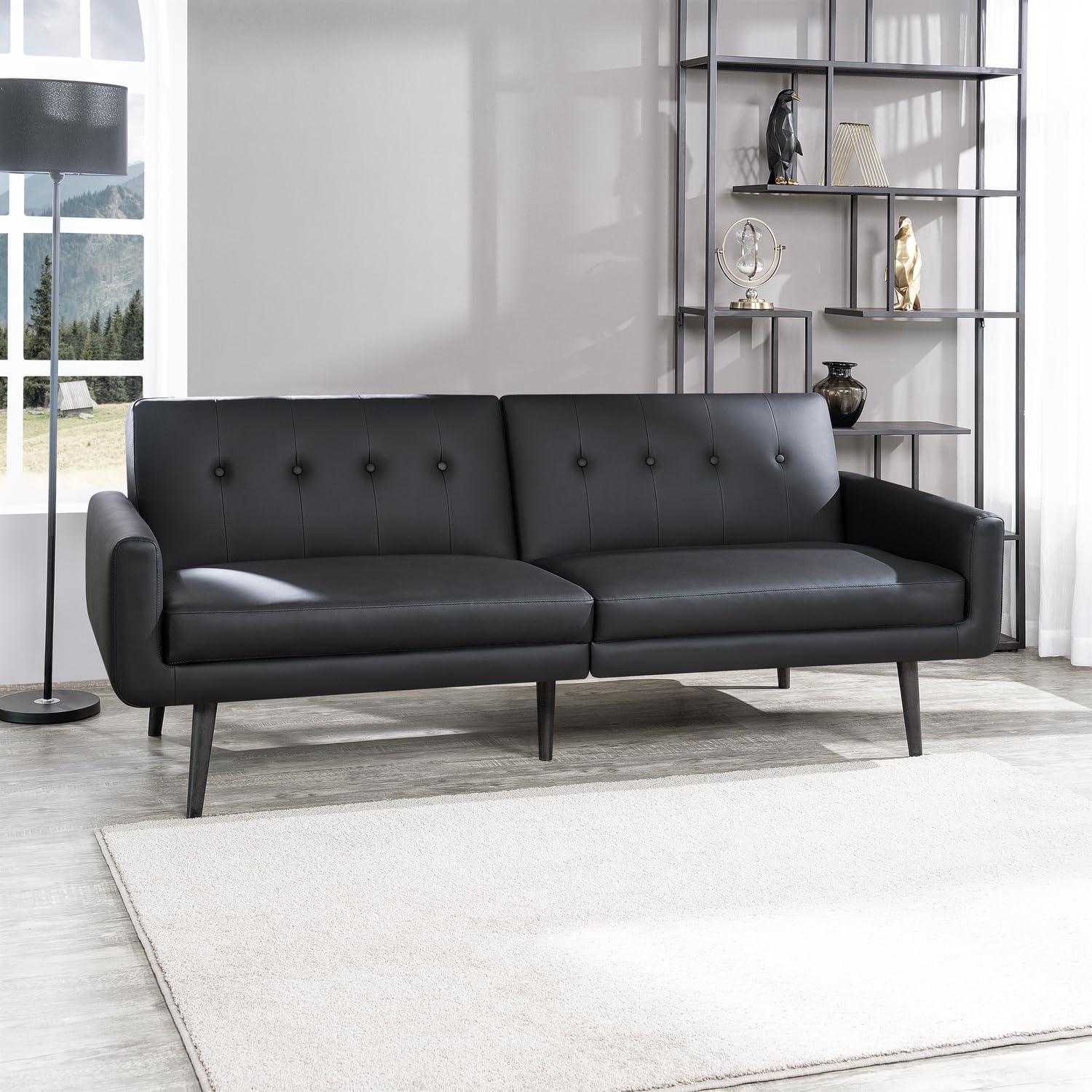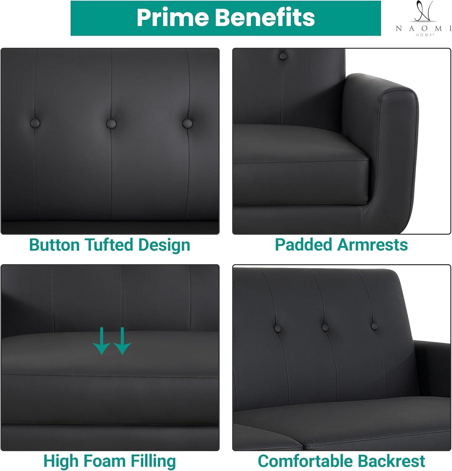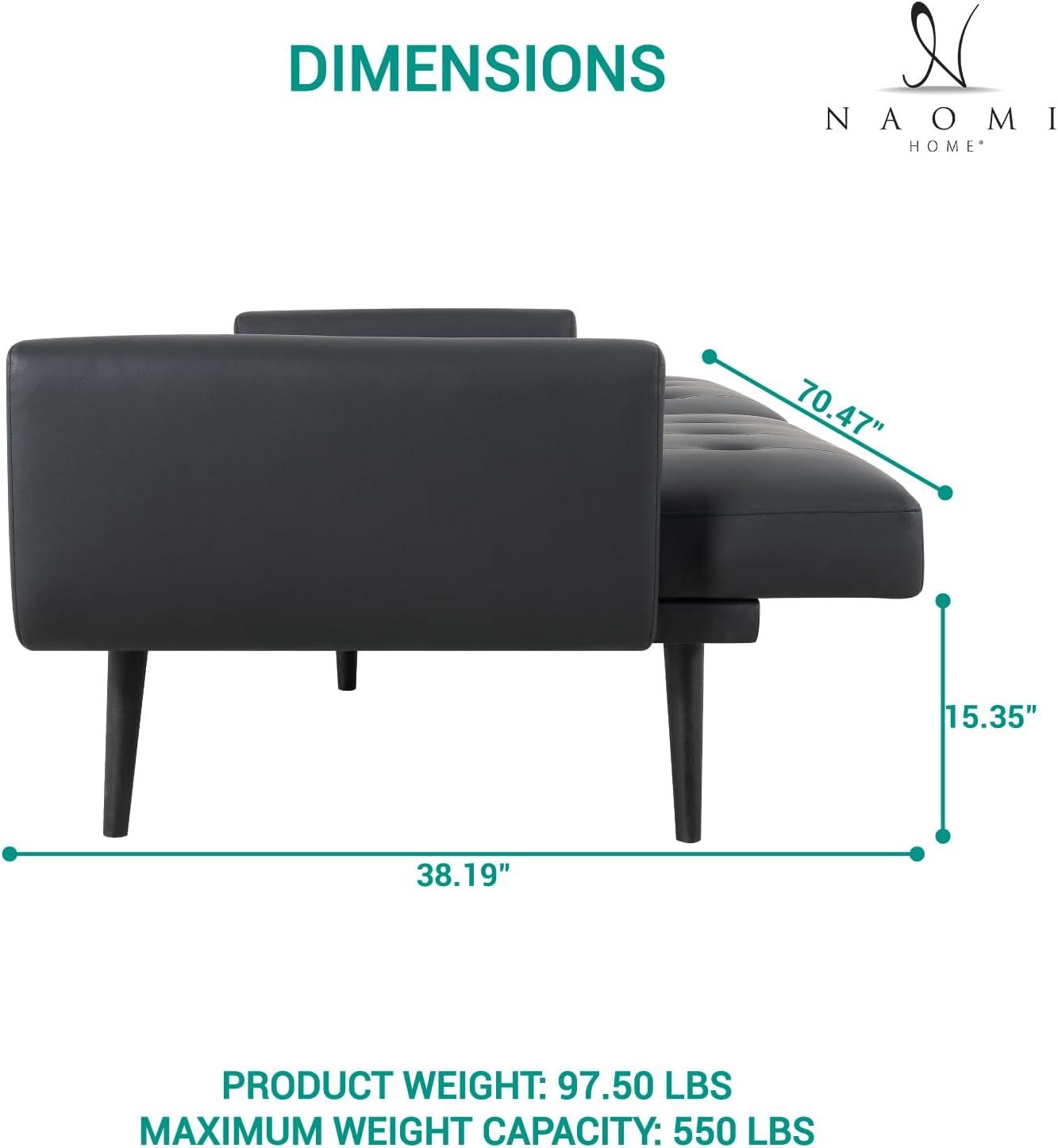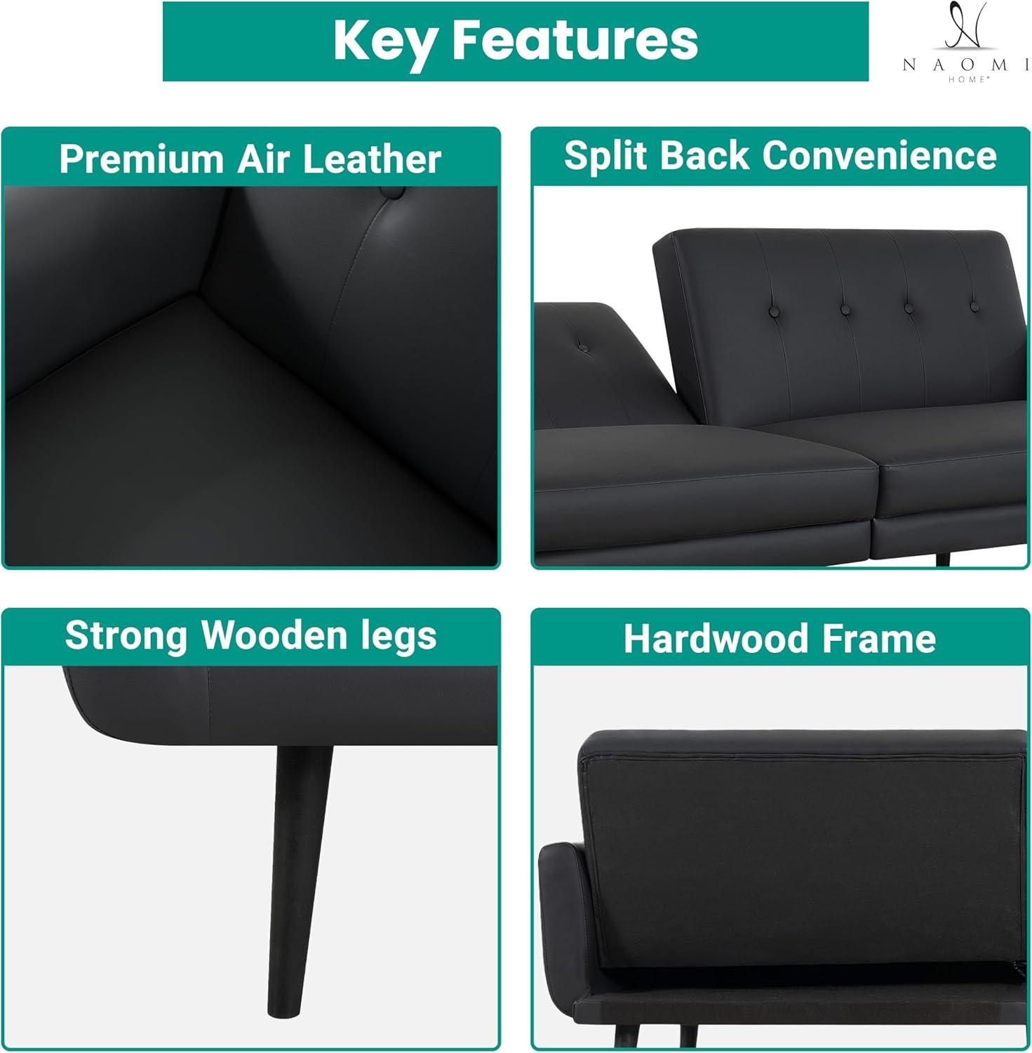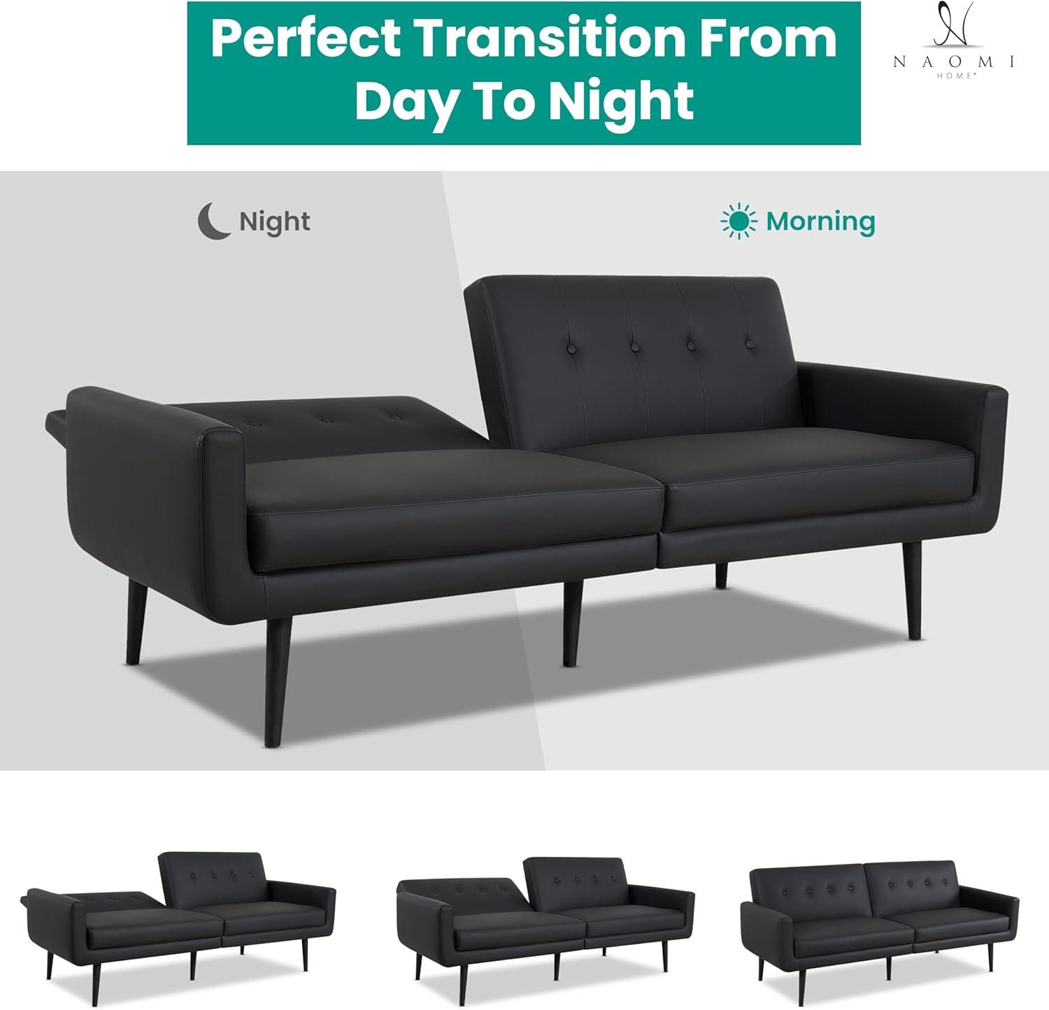 After living with it for a while,you find the Naomi Home monica Leather Futon Sofa convertible Couch Bed Split Back Premium Faux Leather Sleeper Couch Sofa for Living Room Mid Century Modern Fold Out Bed with Tapered Legs Black stops feeling like a delivery and more like a steady presence in the corner. In daily routines it quietly reshapes how the room is used — a place for reading, an extra bed on the odd night, a surface that gives a little under your weight and then settles. over time the faux leather softens at the places you touch most and small marks collect where things are set down,and its shape simply becomes part of regular household rhythms. It stays.