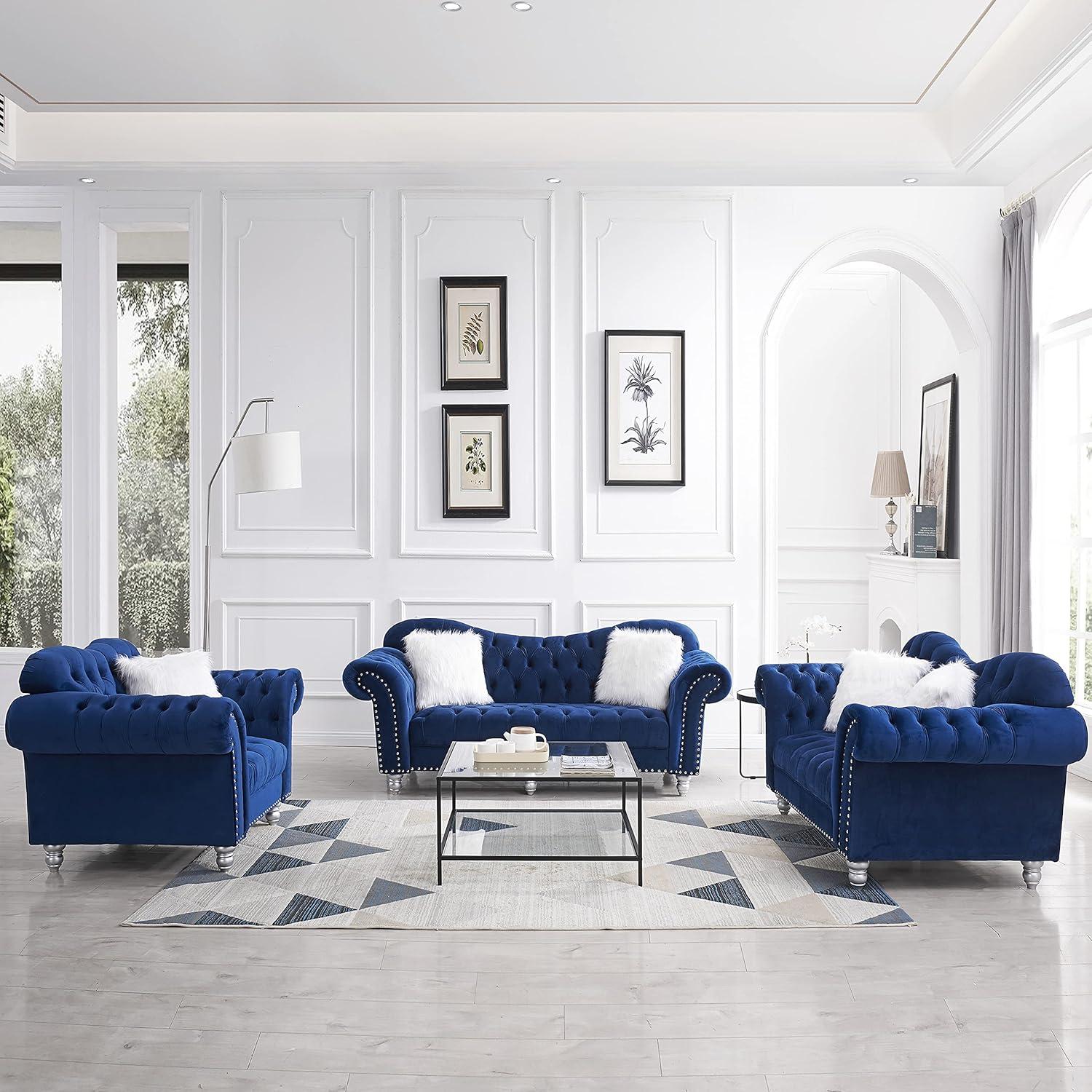 this sofa set strikes a delicate balance between opulent style and practical comfort. While some might wish for removable cushions or a longer warranty, the impressive build quality and timeless design make it a compelling choice for anyone looking to bring a bold splash of navy velvet elegance to their living room.