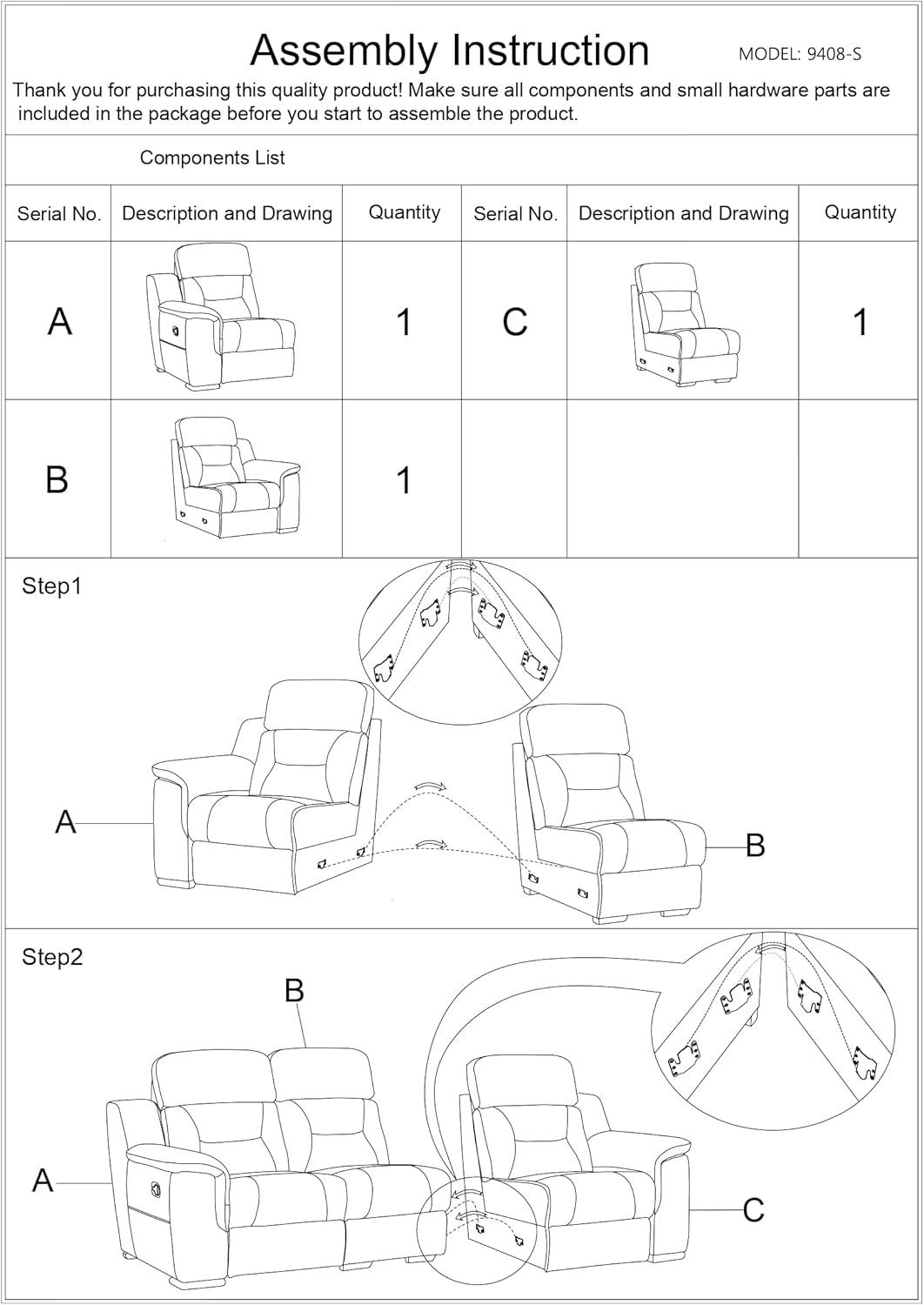 | Reclining Sofa Size | 90″ L x 41″ W x 41″ H |
