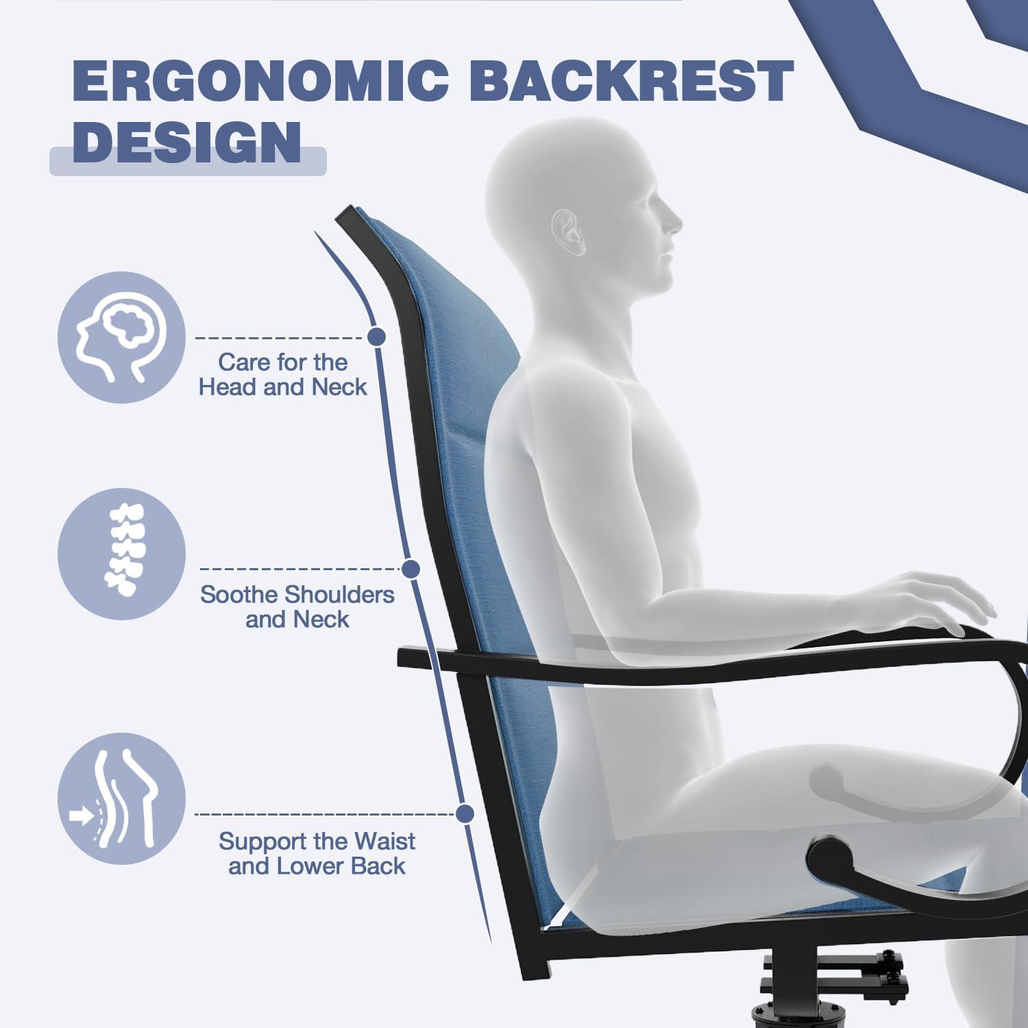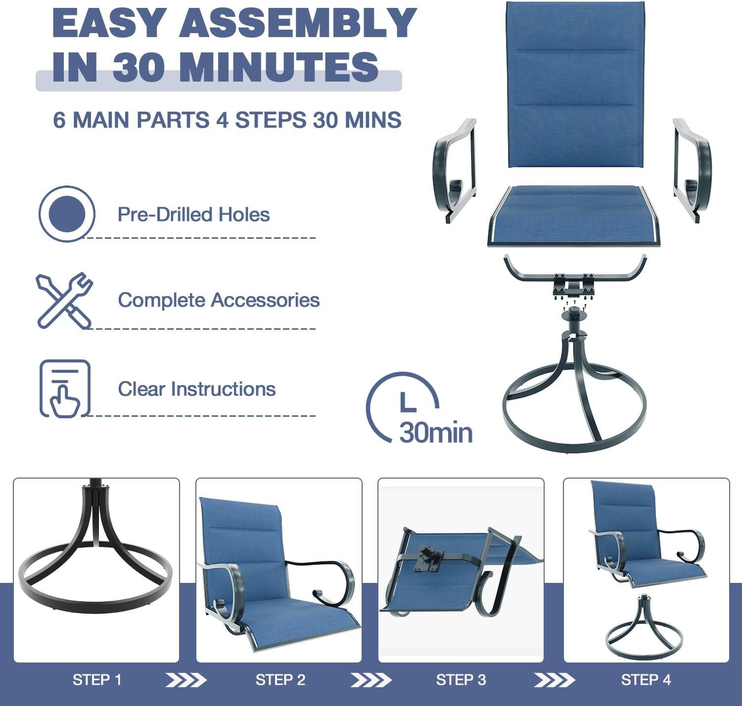 | All-Weather Ready: The padded Textilene fabric is breathable, quick-drying, and designed to withstand sun and rain, making these chairs perfect for year-round outdoor use. | Limited Color Options: Currently available only in blue, which might not suit every backyard aesthetic or personal taste. |