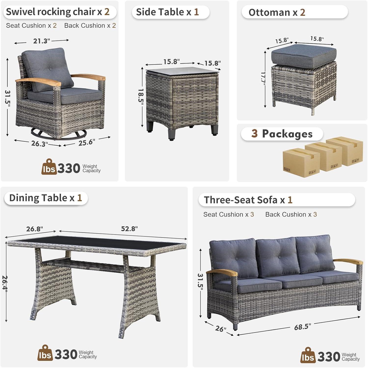 after spending quality time testing and living with the 7-Piece Grey Patio Set with Swivel Rockers,we’ve gathered a balanced view to help you decide if this set is the right fit for your outdoor space.