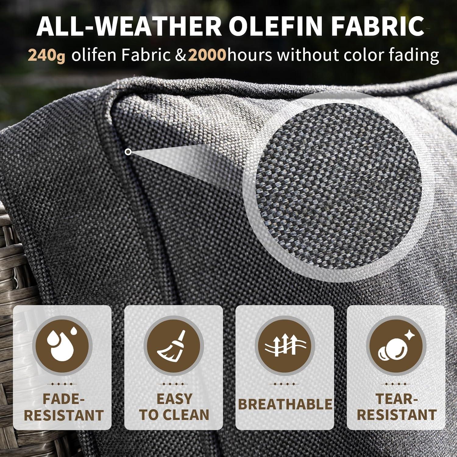 One of the standout features of this patio set is the meticulous craftsmanship behind the hand-woven PE wicker. The synthetic rattan not only captures the elegant, natural look of real wicker but is also designed to endure all weather conditions. Its careful weaving over a powder-coated steel frame ensures durability and resilience, meaning it resists rust, fading, and cracking through seasons of sun, rain, and wind. We found the texture smooth yet sturdy-offering a perfect balance between comfort and robustness.