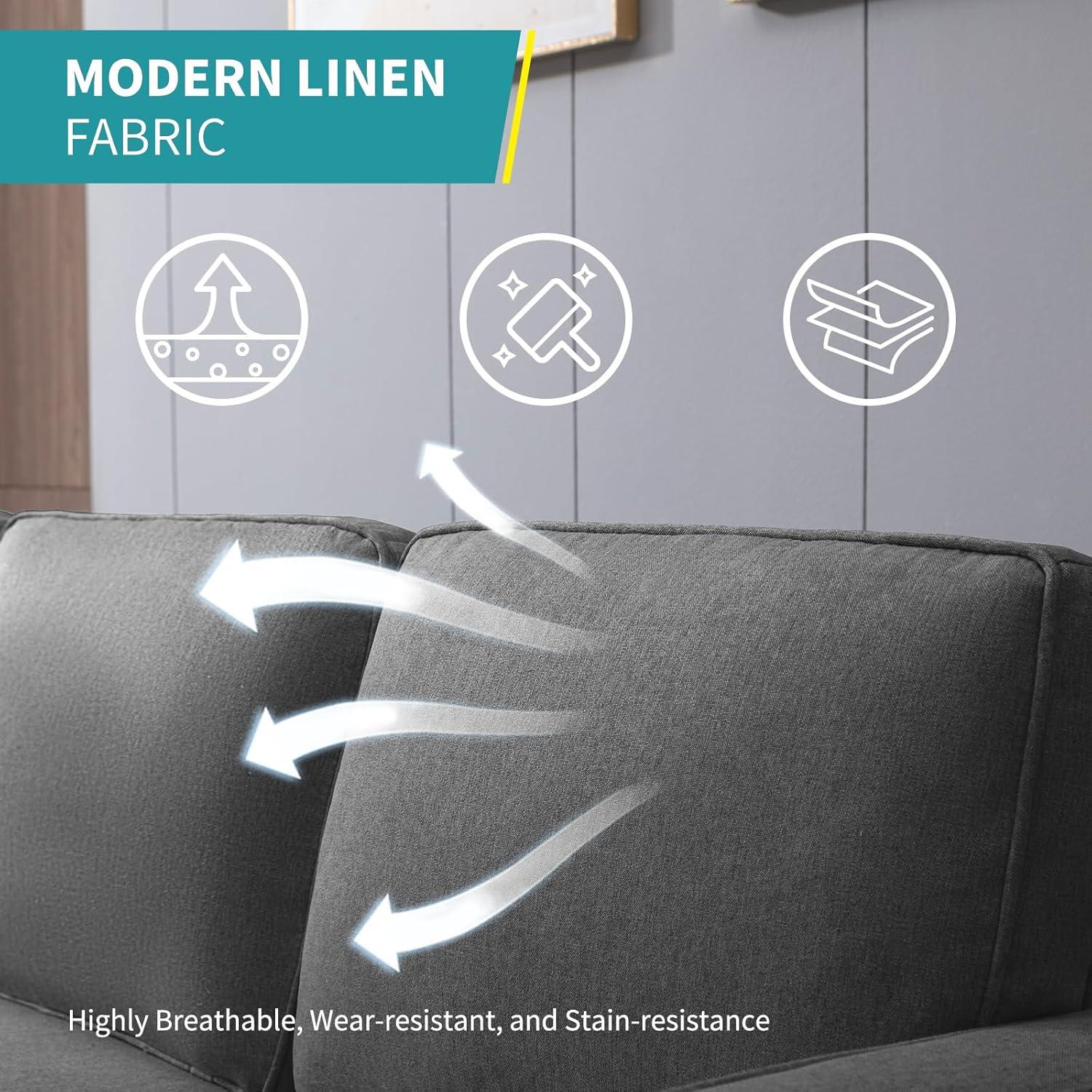 the L-shaped sectional’s ability to be repositioned and customized makes it a versatile addition for a broad range of living environments. Its elegant dark grey linen fabric not only complements various decor themes but also ensures durability and comfort that stand the test of time.