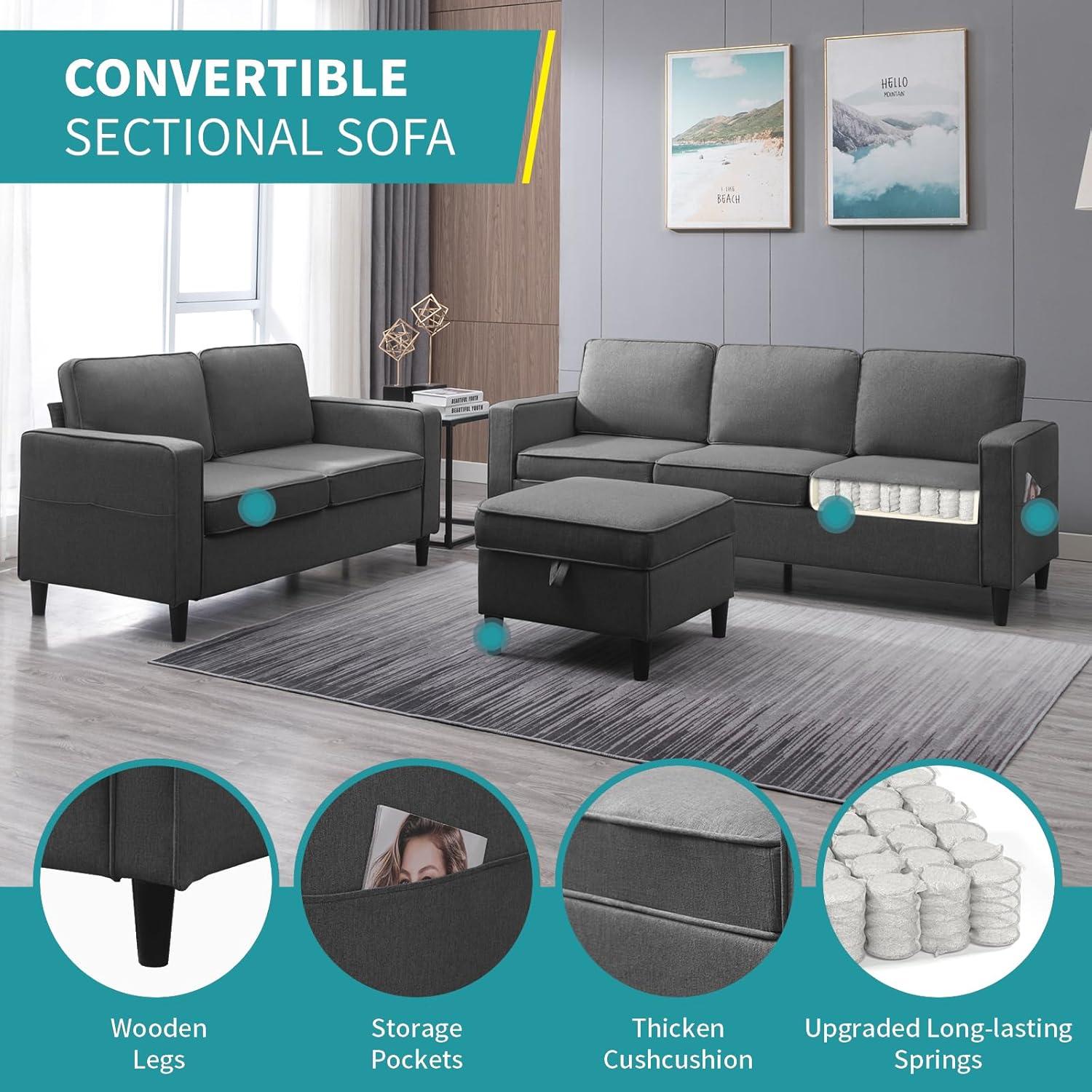 The construction of this sofa set reflects thoughtful craftsmanship, combining a robust wood frame with high-elasticity sponge and pocket coil cushioning that offers both durability and comfort. The linen fabric upholstery not only feels breathable and soft to the touch but also contributes to the overall longevity of the furniture. We particularly appreciate how the cushions maintain their shape,even after being shipped compressed,which speaks volumes about the resilient materials used. The movable storage ottoman’s design is solid and seamlessly integrates with the seating, providing practical versatility without compromising sturdiness.