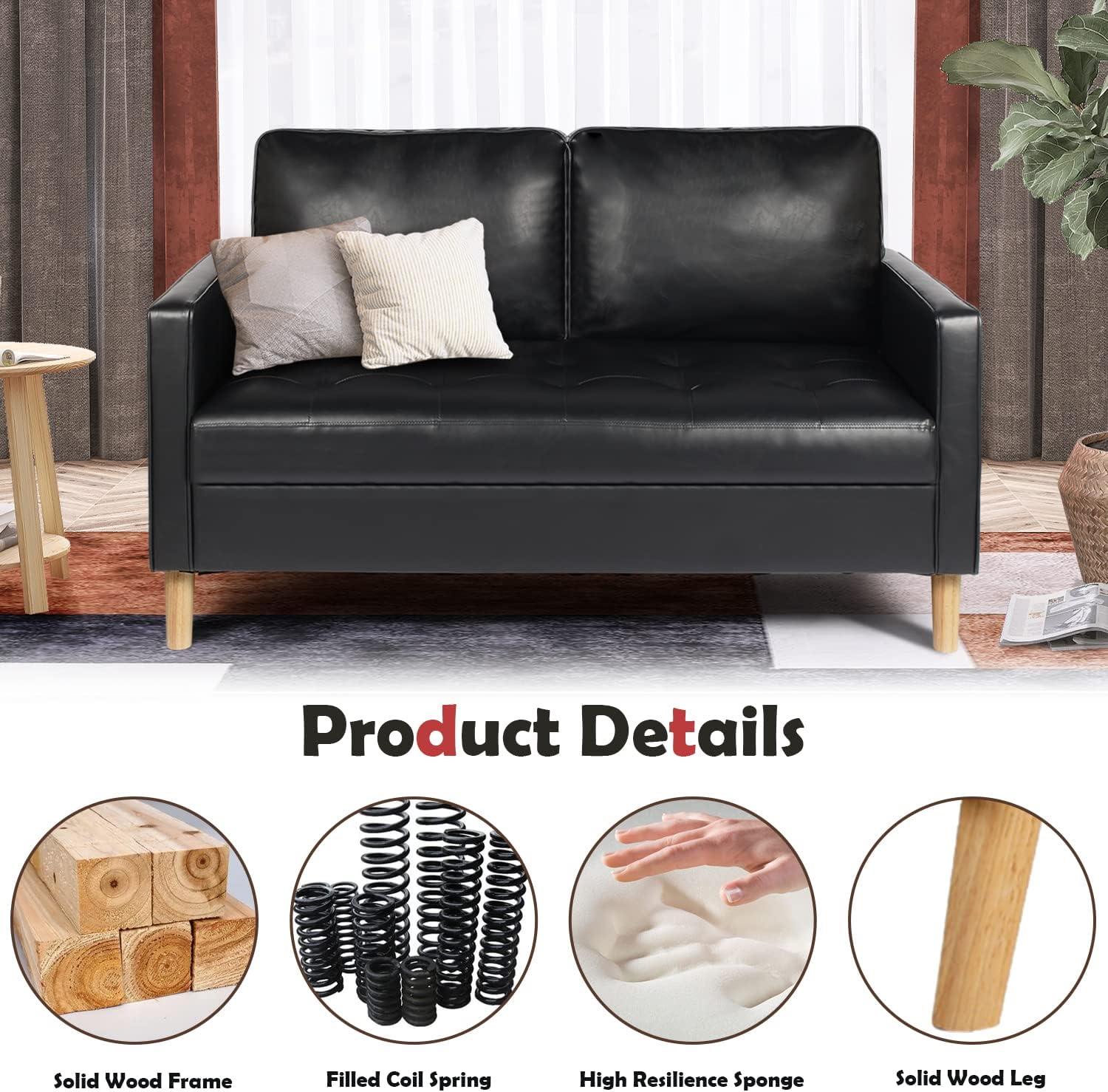 | Elegant black leather upholstery with stylish stitching tufted cushions that add a complex touch to any room | Leather can feel a bit stiff initially and requires regular maintenance to keep it looking pristine |