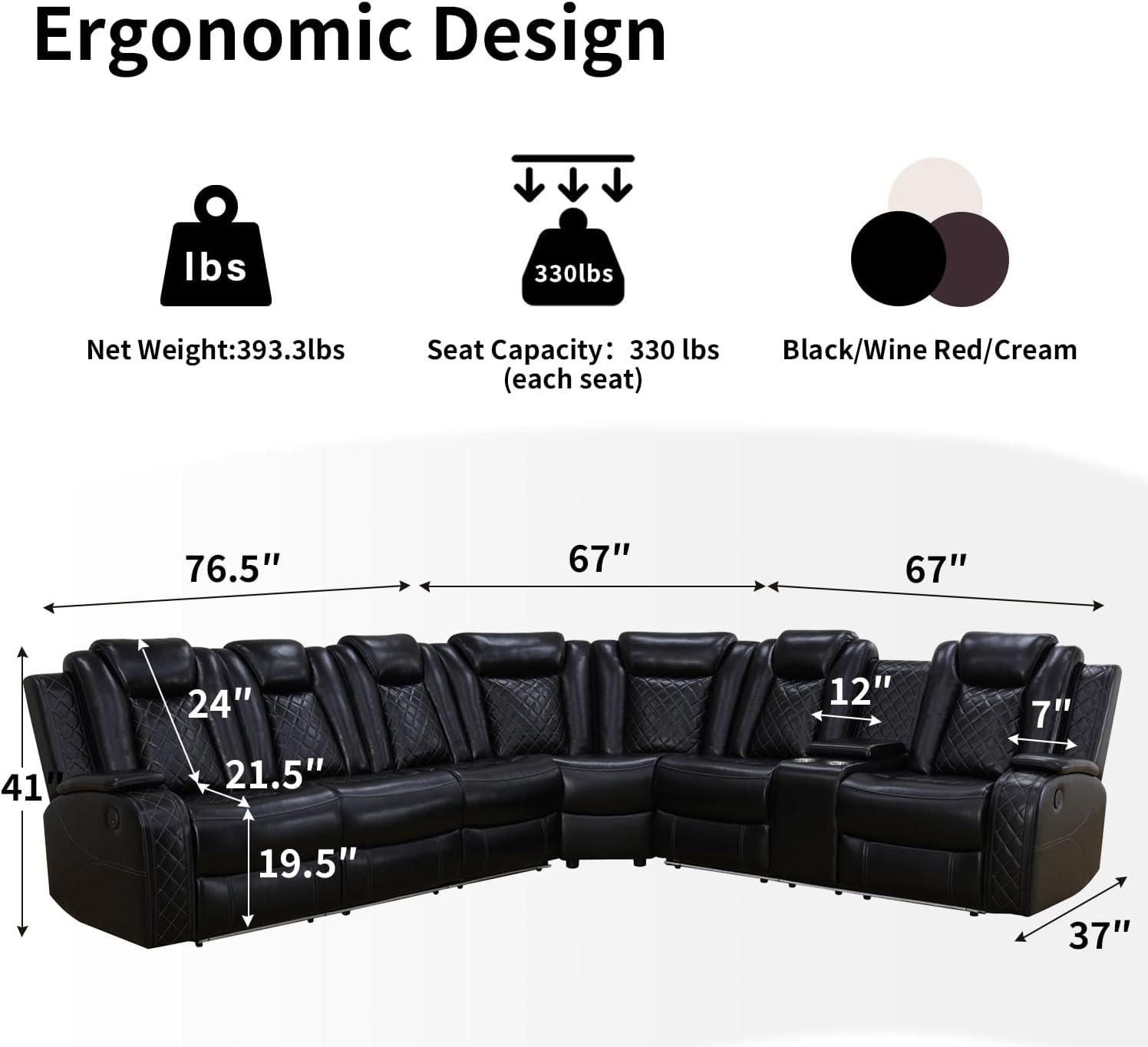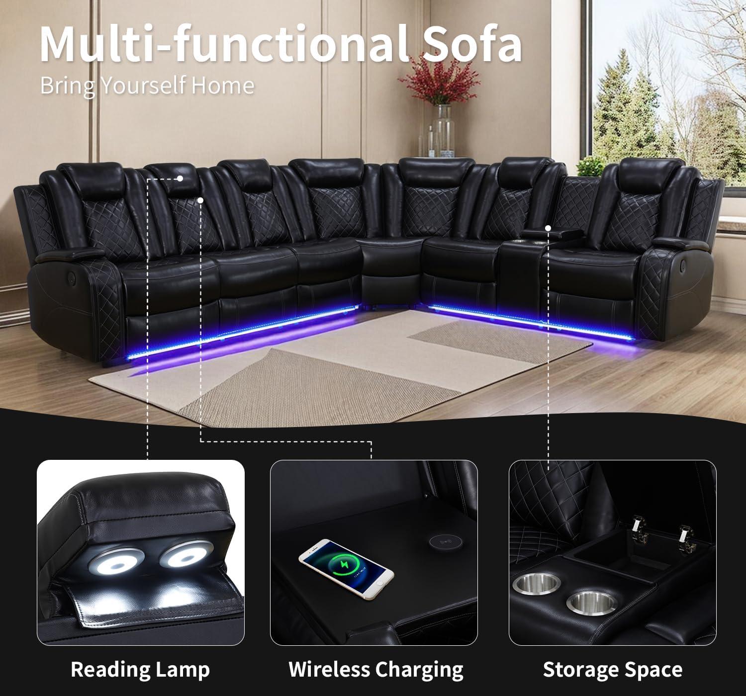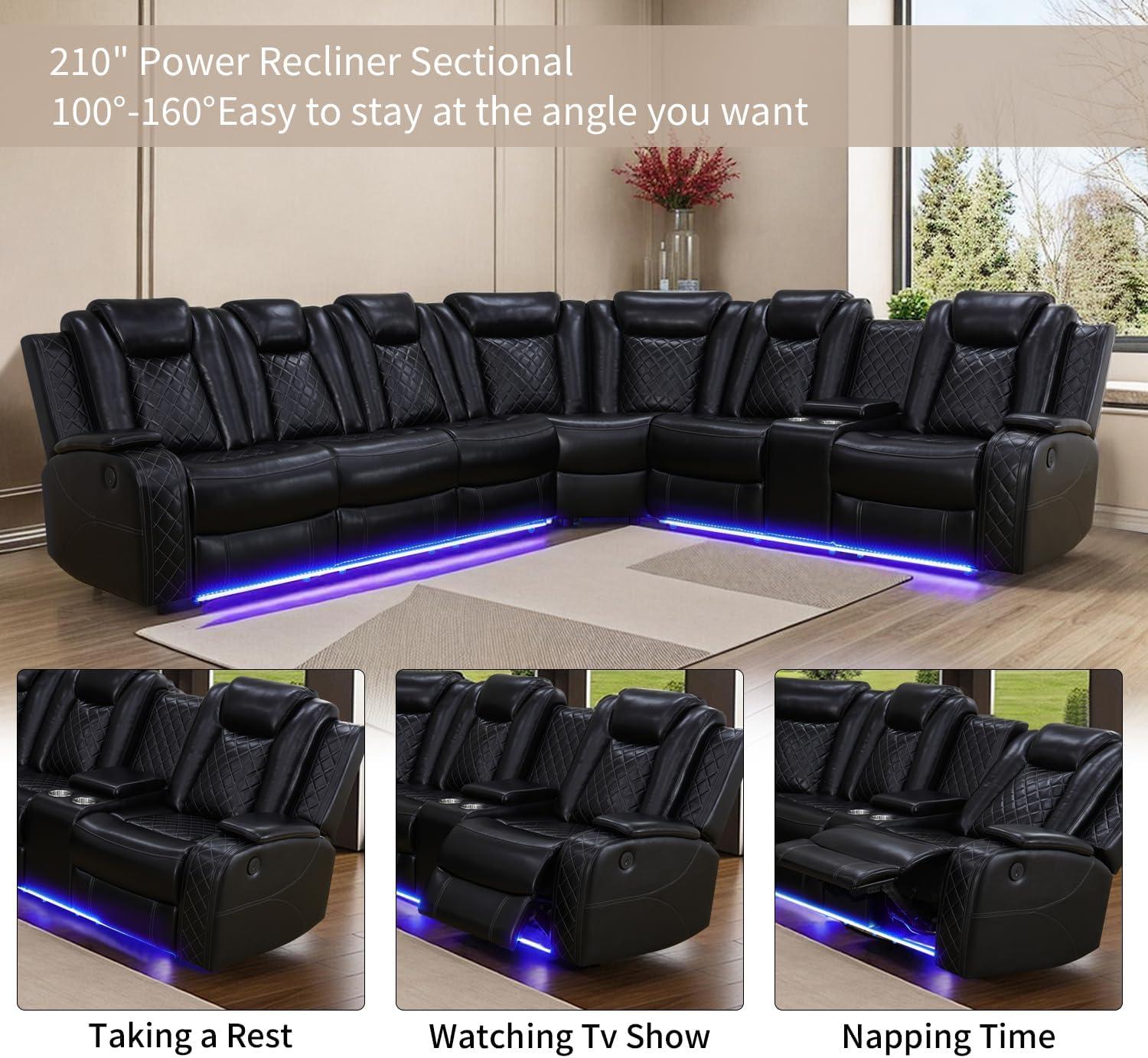 This sectional sofa is perfect for families and individuals who value both comfort and functionality in their living space.Those who enjoy hosting movie nights or long gaming sessions will appreciate the reclining seats with power controls and built-in LED lighting, offering a customizable, immersive experience. Its generous overall length and spacious seat dimensions mean everyone-from kids to adults-can relax without feeling cramped. Plus, the high-quality foam cushions combined with breathable leather ensure long-lasting comfort whether you’re lounging for hours or just taking a quick break.