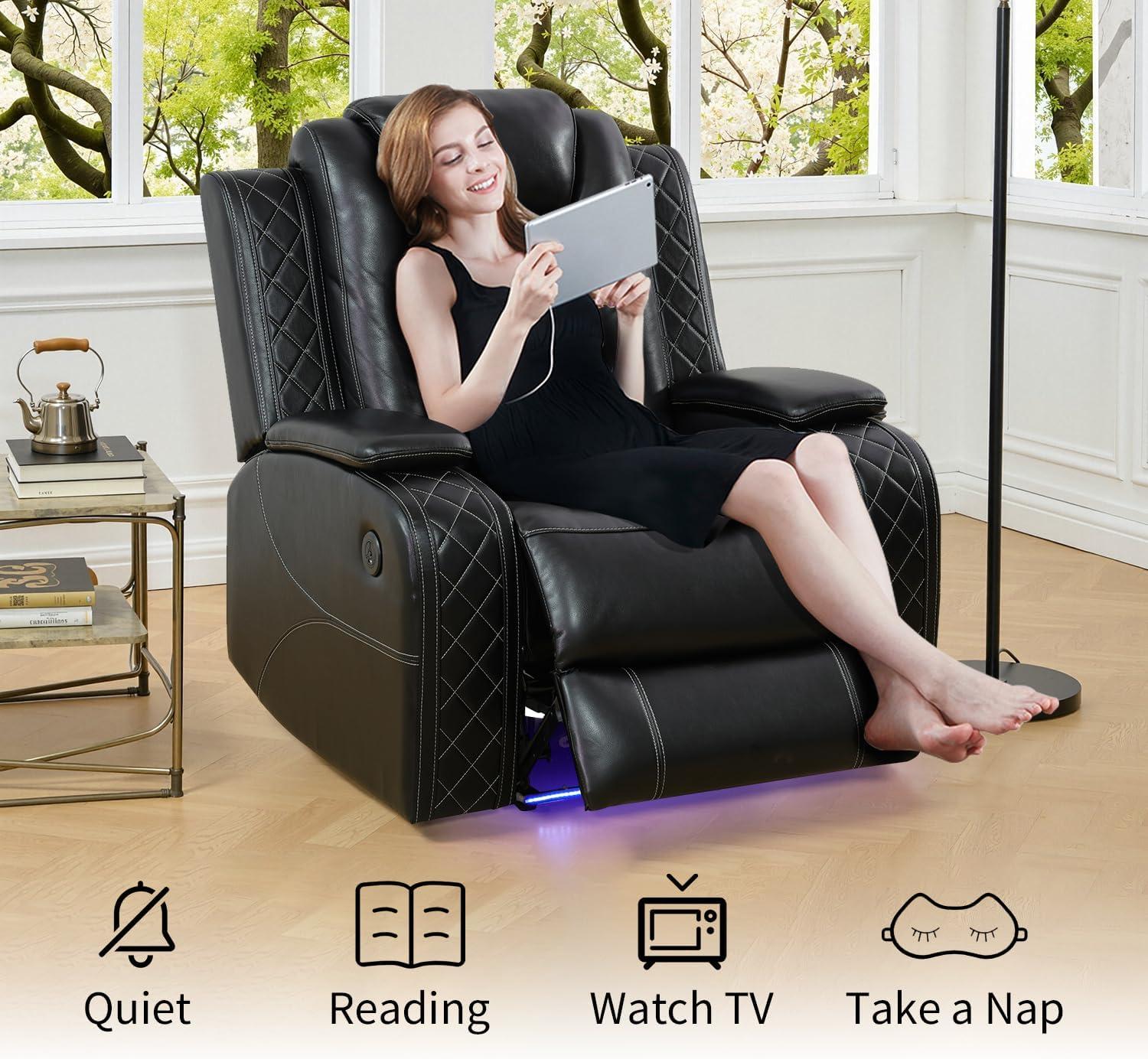 The integrated LED lights truly elevate the atmosphere of our living space by adding a subtle, modern glow that complements the sofa’s sleek leather design. These lights are not just decorative; they provide a gentle, ambient illumination perfect for movie nights or relaxing evenings without the harshness of overhead lighting.With simple button controls located conveniently beside the armrests, adjusting the brightness and turning the LEDs on or off becomes an effortless part of our relaxation routine. This feature instantly adds a touch of sophistication, making the entire room feel cozier and more inviting.