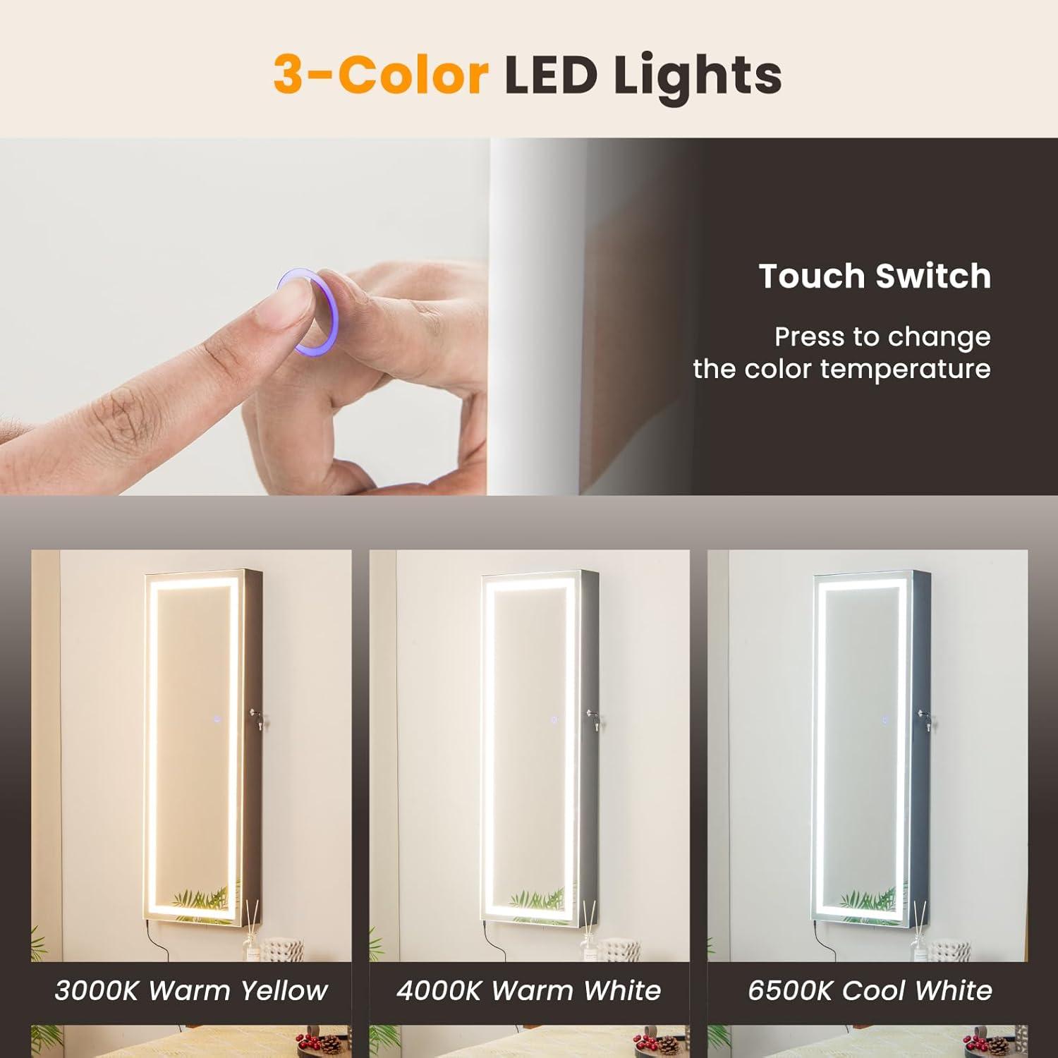 The integrated 3-color LED lighting feature truly stands out in this jewelry cabinet. We appreciated the ability to switch between warm, natural, and cool light settings, which made it easier to view jewelry in different lighting conditions. Whether prepping for a casual daytime look or an evening event, the lighting adapts effortlessly to our needs. The leds illuminate the mirror evenly without any harsh glare, enhancing the overall functionality without compromising style.Being able to customize the lighting added a layer of convenience that typical vanity mirrors often lack.