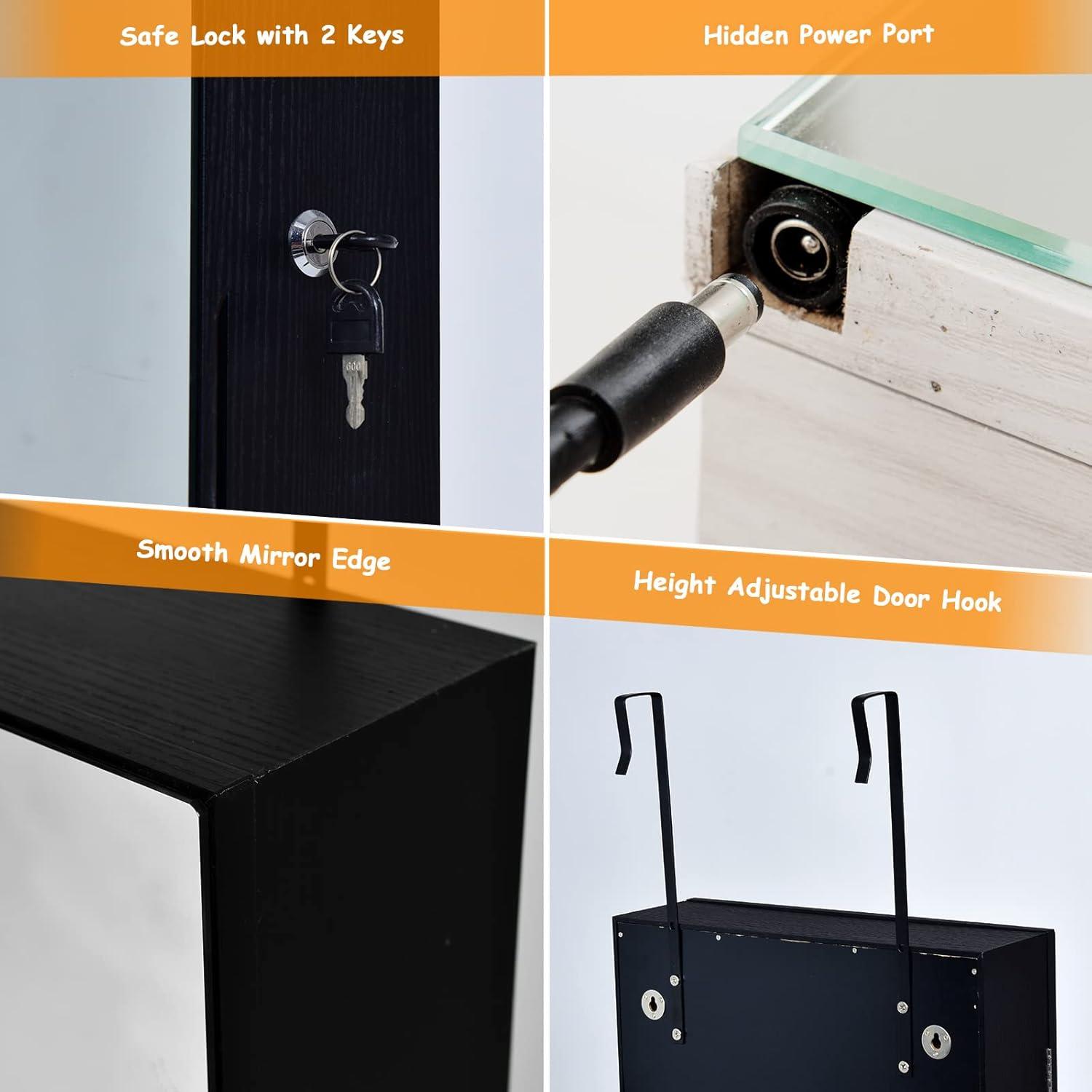 Beyond its visual appeal, the mirror comes with practical features that elevate everyday usage. The integrated 3-color LED lights surrounding the mirror provide customizable lighting options, perfect for different times of day or mood settings, which means better visibility for selecting jewelry and applying makeup. Additionally, the lockable design offers secure storage for precious items right behind the mirror, combining convenience and security in one smart setup. Here’s a quick overview of its key practical benefits: