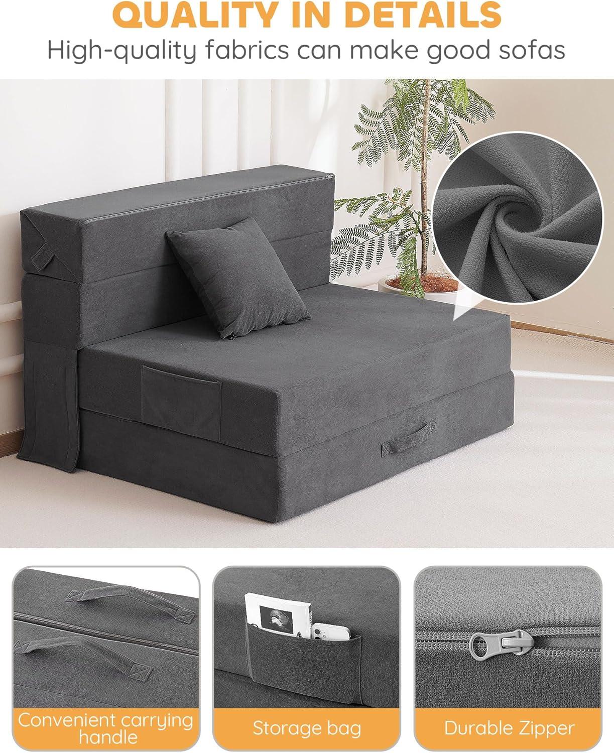Functionality is another major plus. The built-in carry handle makes it surprisingly easy to relocate, while the solid zipper and handy storage pocket help keep essentials within reach without cluttering your space. Whether you’re looking to create a cozy nook for reading, a comfortable spot for napping, or a practical option seating option for guests, this folding couch adapts well. Below is a quick summary of the key features that impressed us the most: