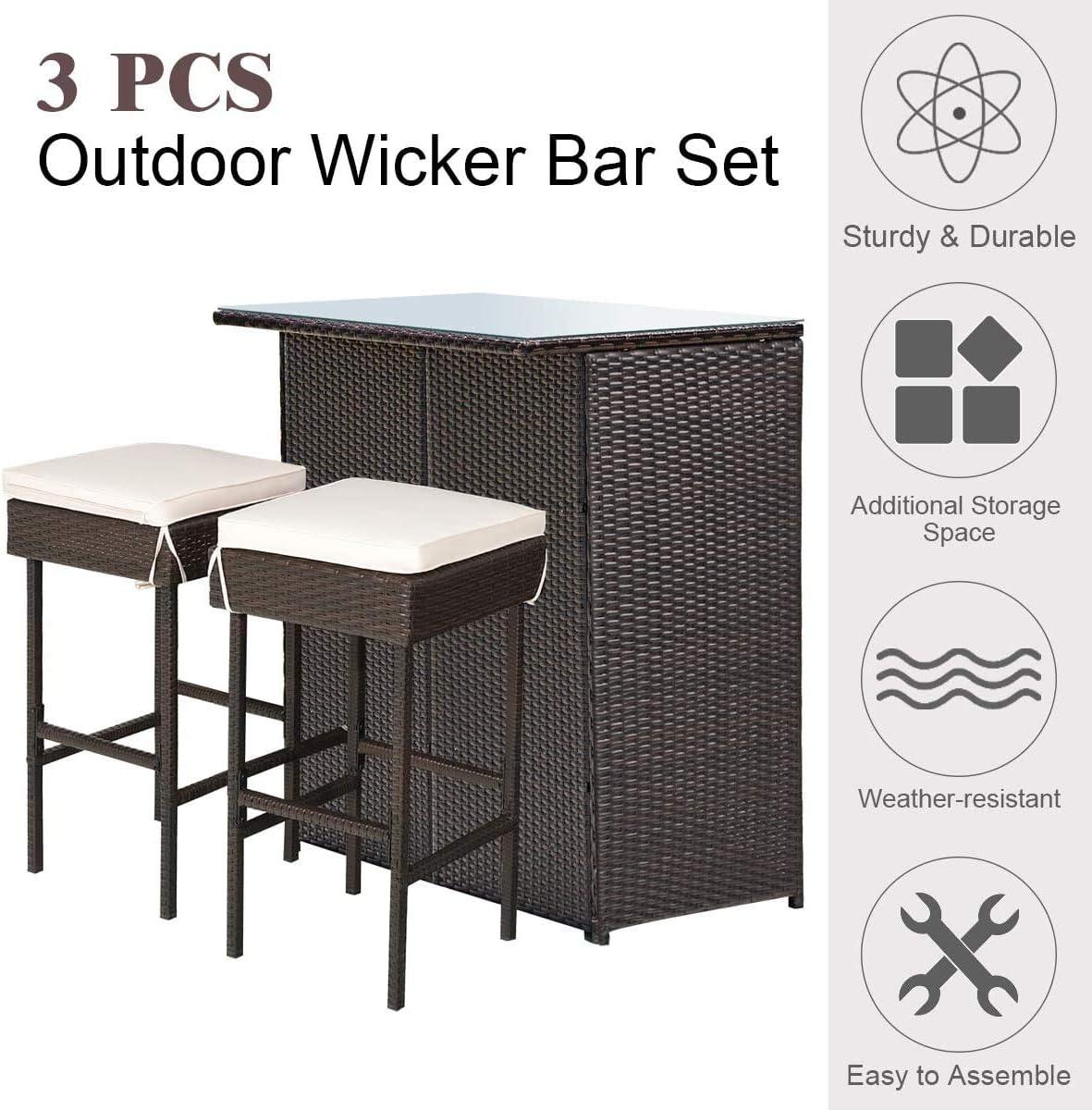 this outdoor bar set impresses us with its elegant design and practical features. The square stools paired with the rectangular bar create a balanced and visually appealing‍ setup that effortlessly enhances any patio or poolside atmosphere. We appreciate‌ the thoughtful inclusion of two spacious storage shelves ‌beneath the bar, offering convenient spots for drinks, mixers, or even ⁤serving dishes – a perfect touch for anyone who enjoys hosting gatherings. The ⁢PE rattan wicker⁤ withstands the elements well, while the soft cushions ⁢and ergonomic footrests ensure comfort⁣ during ⁣long​ evenings. Assembly requires a careful approach to screw⁢ alignment, but once complete, the sturdy steel ⁣frame ‌guarantees⁣ both⁣ durability and style.