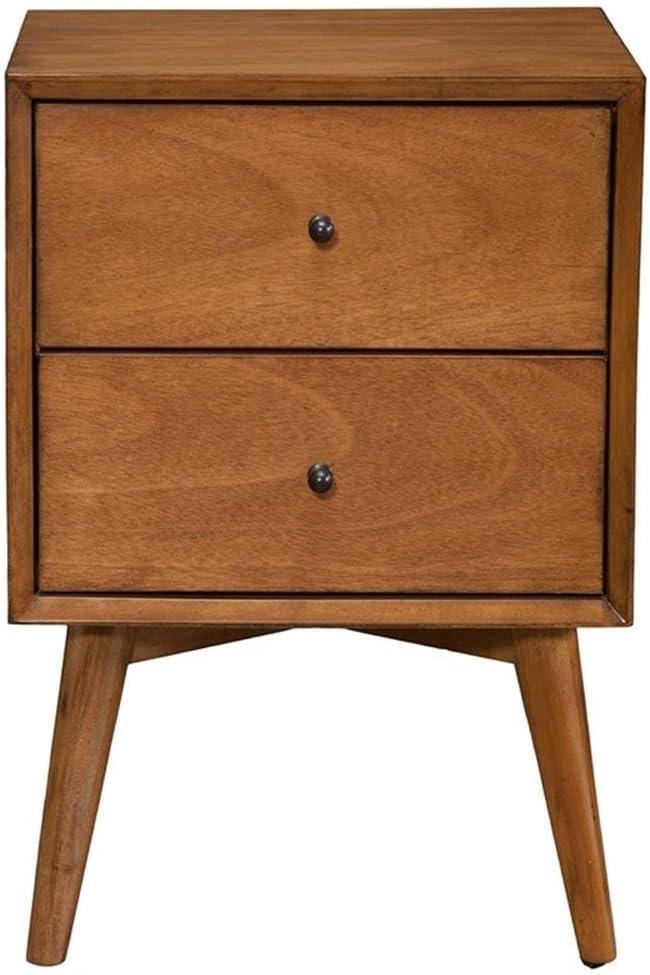 Small 2 ⁢Drawer Nightstand 26″ x 18″ x ‌15″ 37 Mahogany Solids​ & Veneer Acorn Brown