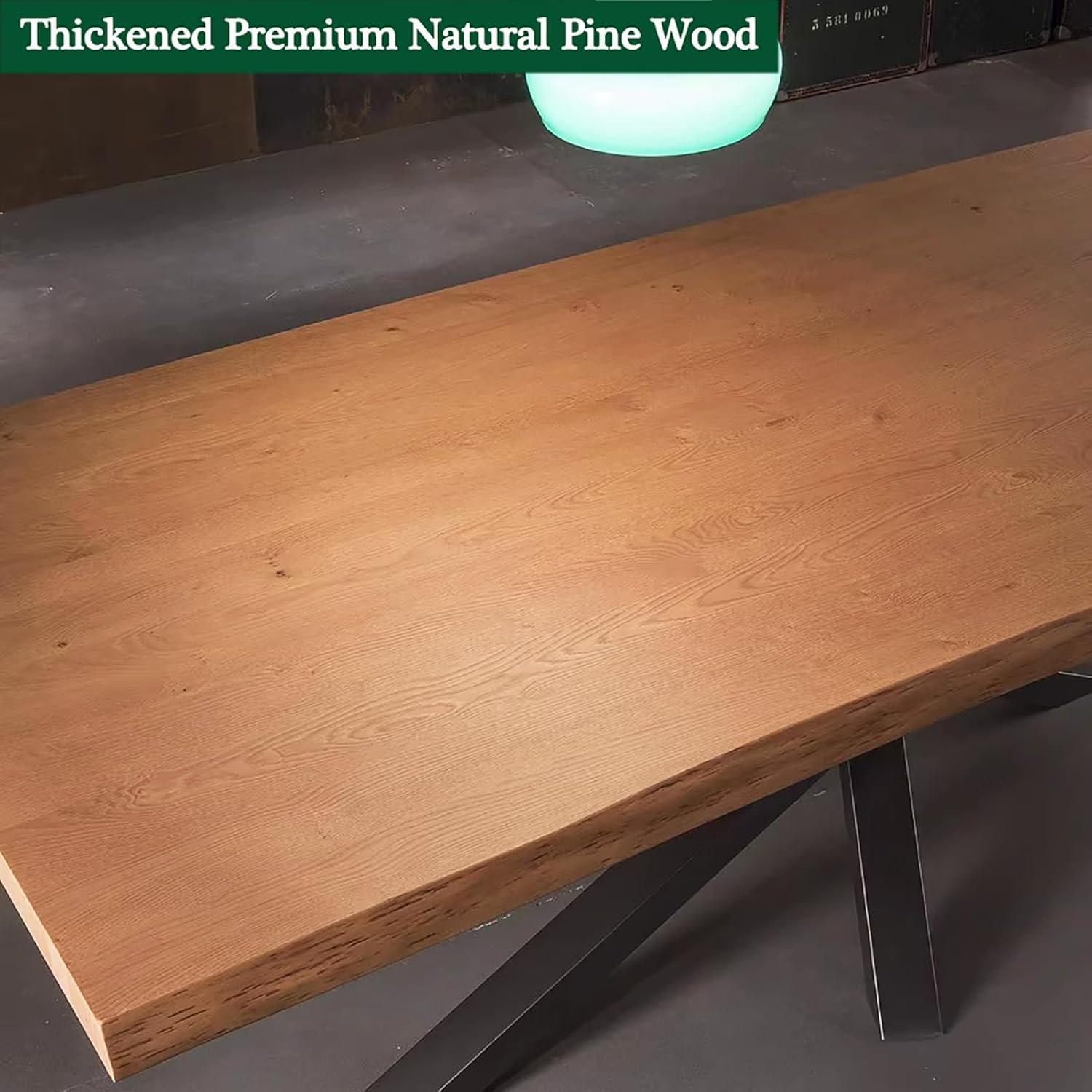 | Timeless Industrial Style Combines rustic pine wood with a sleek metal base, giving it a trendy yet durable farmhouse vibe. |