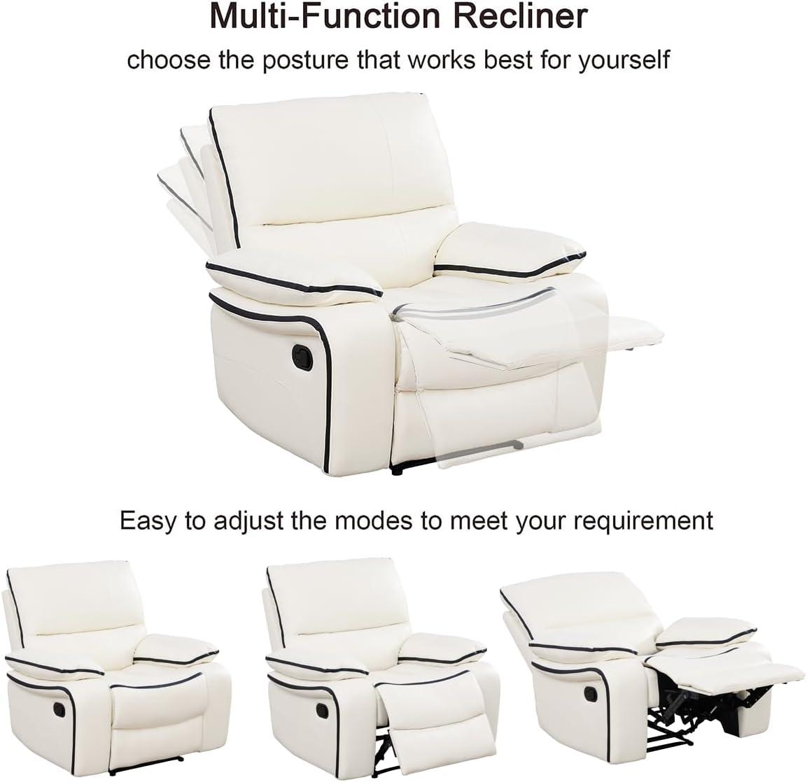 This furniture is also a great choice for those who want an easy, tool-free installation process to minimize setup stress. Spaces that vary in size will appreciate the distinct pieces – a three-seat sofa, loveseat, and single recliner – which offer flexible room arrangements without overcrowding. The breathable leather upholstery combined with high-density memory foam provides comfort while maintaining a clean and modern look in white. Whether you’re creating a dedicated theater room or upgrading a shared living space,this set’s thoughtful design elements make lounging truly enjoyable.