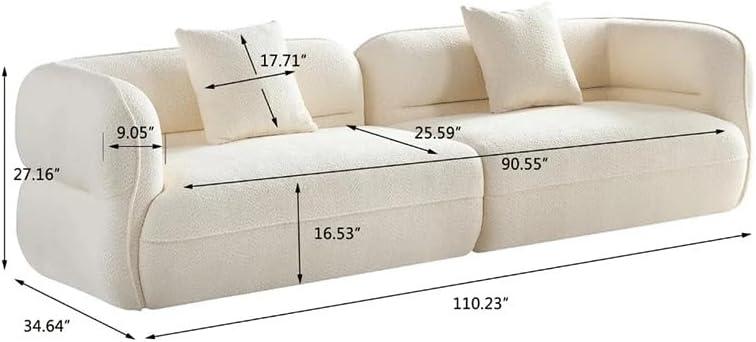 In terms of size, the sofa’s dimensions strike a harmonious balance between ample seating and spatial efficiency. The solid wood frame ensures it can reliably support up to 1100 pounds, affirming its durability for family use. The beige boucle fabric not only contributes to its luxurious appearance but also stands up well to daily wear, maintaining its form and texture over time. below is a quick overview of key size and construction features: