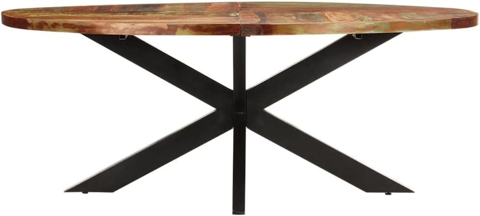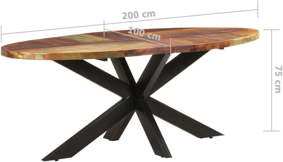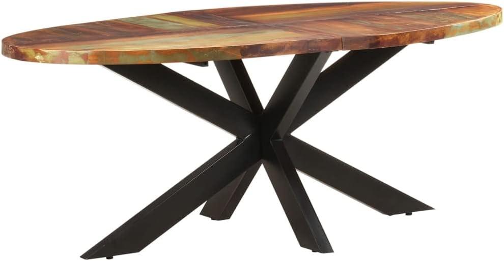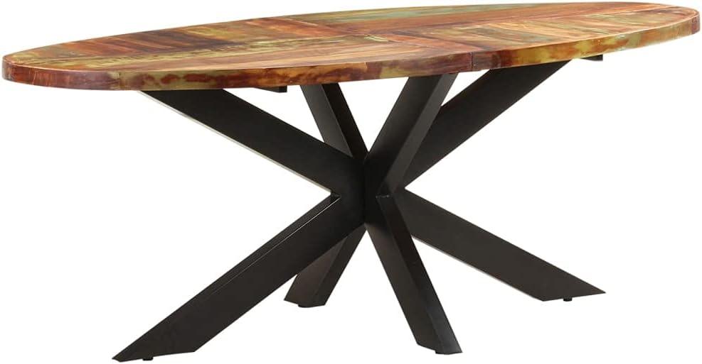 One of the most captivating features of this dining table is its use of solid reclaimed wood, sourced from old joists, floors, and support beams. The natural aged and weathered textures create a warm, inviting surface that tells a story with every grain and knot. Unlike newly manufactured wood, this reclaimed timber has been dried and seasoned over decades, ensuring minimal shrinkage or warping.The table’s oval shape, measuring a generous 78.7″ by 39.3″, coupled with its robust 29.5″ height, provides ample space while maintaining an elegant, streamlined silhouette. Adding to its rustic charm, each piece carries distinct wood hues-including pine, teak, beech, oak, cedar, mango, and acacia-making every table a unique work of art. The slightly rough finish preserves the authentic character of the wood, proudly displaying the marks of time that industrial design enthusiasts cherish.
