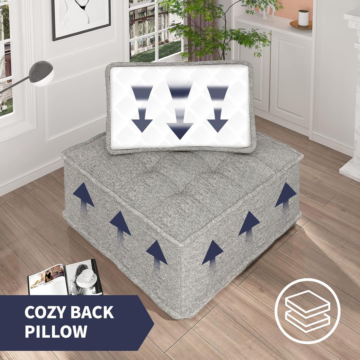 the ergonomic design further elevates comfort with removable trapezoidal back pillows that can be adjusted or replaced with smaller neck pillows if desired. Each seat is spacious enough to comfortably support adults up to 550lbs, which is perfect for accommodating guests or sprawling out in personal spaces. Assembly is straightforward, with each piece arriving separately and including the necessary hardware, making moving and fitting the sectional around furniture or room corners hassle-free. We found the wide square base ensures excellent stability without damaging delicate flooring, making it a practical choice for bedrooms or cozy living areas alike.