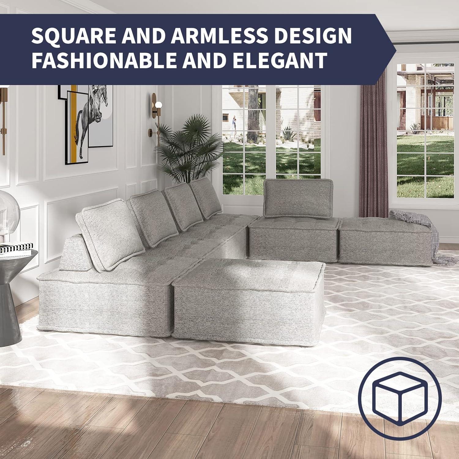 Support is further enhanced by the sofa’s robust construction.Each piece holds up to 550 lbs, so we feel secure whether sitting or sprawled out. The armless, modern style allows for free movement and an open feel, while the solid wide base provides excellent stability. This setup is perfect for a variety of settings – from cozy living rooms to even bedrooms or study areas – with the added bonus of being easy to rearrange. The flexibility to move and reconfigure the seven pieces into L-shaped or U-shaped formations means we can create the right seating arrangement for socializing or relaxing solo.
