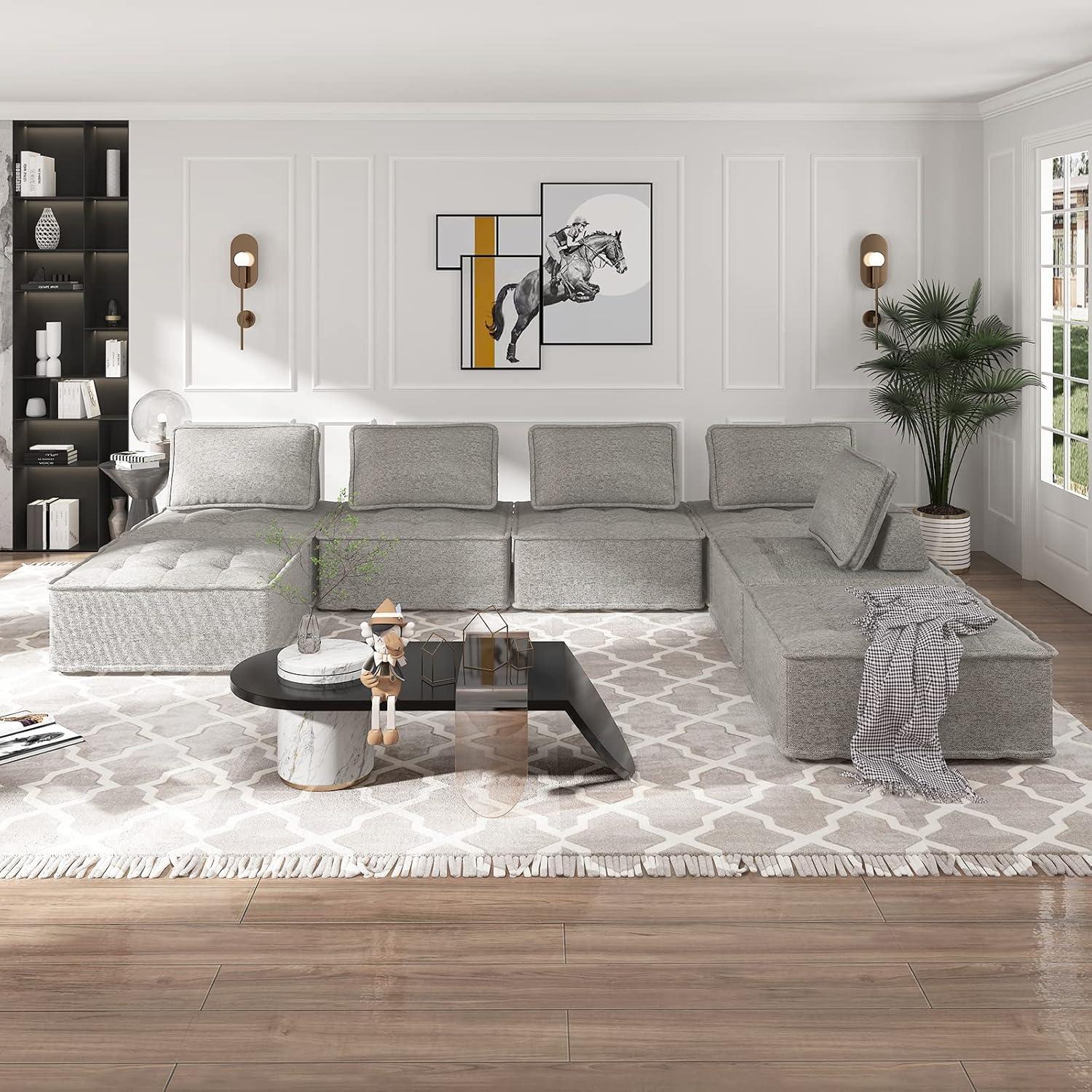 When integrating this modular sectional into our living room or bedroom, its versatility truly stands out. The ability to rearrange each piece freely means we can customize the layout to fit different spaces effortlessly, whether we want an L-shaped comfy corner for movie nights or a U-shaped setup that encourages group conversations. Its armless design keeps the look open and modern, while the soft, high-elasticity sponge cushions ensure hours of comfortable seating without feeling stiff or flat. Plus, the light grey linen fabric is not only stylish but also skin-friendly and easy to clean, making it ideal for daily use in both high-traffic living rooms and more relaxed bedroom nooks.